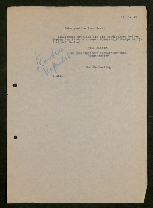 V176 Senckenberg Gesellschaft für Naturforschung, 641 - Vergabe von Freikarten zur Vorlesungen und Vorträgen der Senckenbergischen Naturforschenden Gesellschaft an Firmen, Lazarette und Schulen