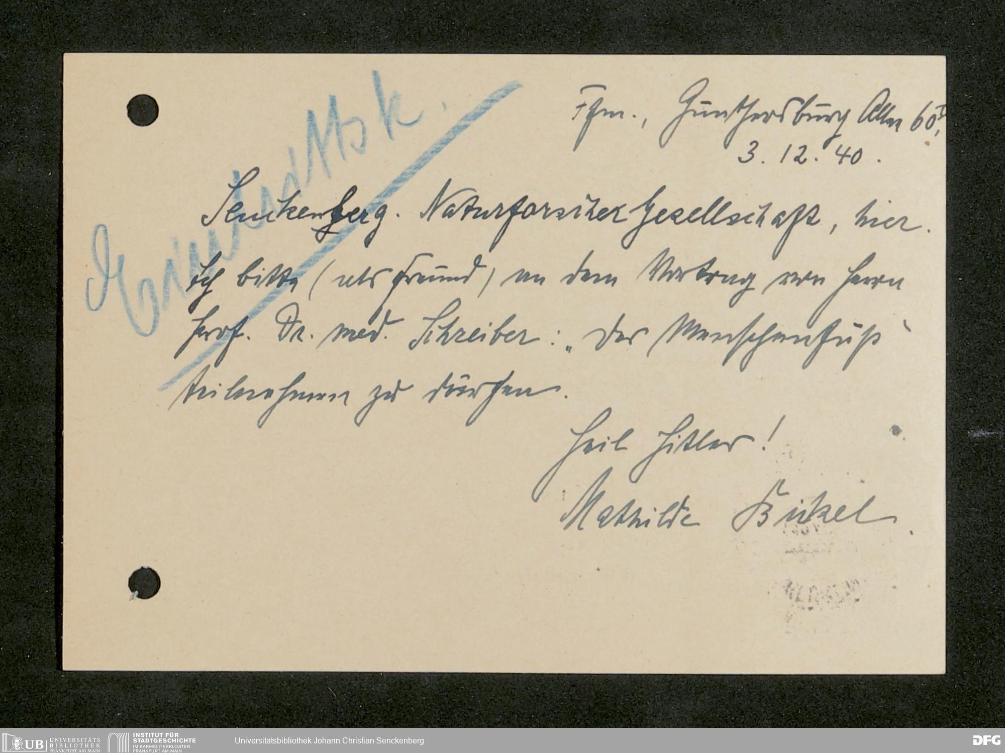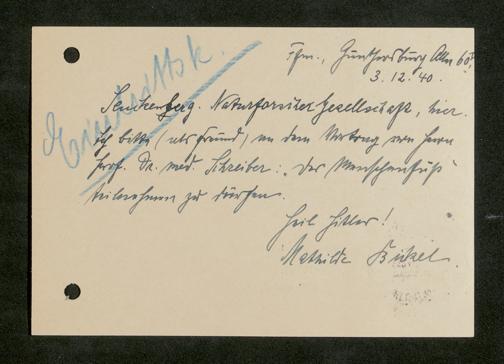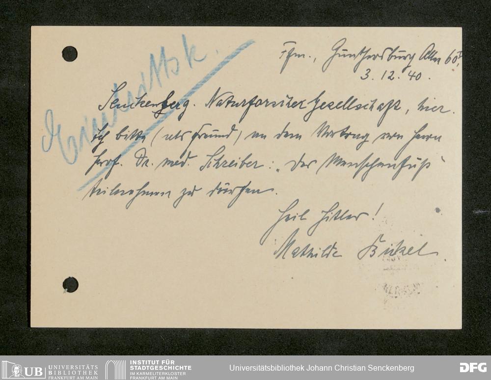 V176 Senckenberg Gesellschaft für Naturforschung, 641 - Vergabe von Freikarten zur Vorlesungen und Vorträgen der Senckenbergischen Naturforschenden Gesellschaft an Firmen, Lazarette und Schulen