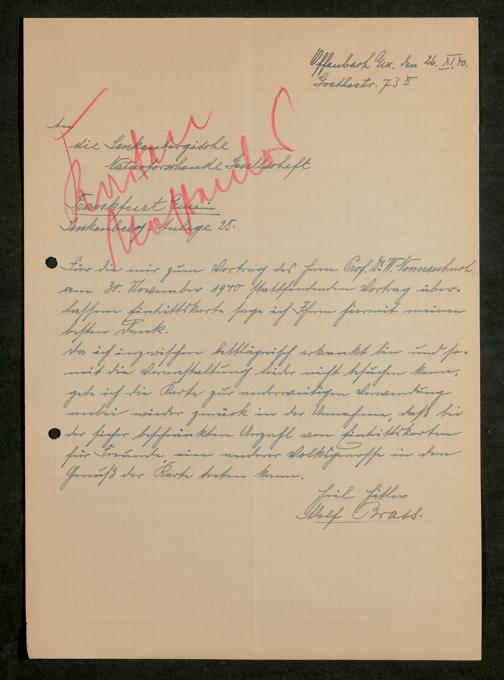 V176 Senckenberg Gesellschaft für Naturforschung, 641 - Vergabe von Freikarten zur Vorlesungen und Vorträgen der Senckenbergischen Naturforschenden Gesellschaft an Firmen, Lazarette und Schulen