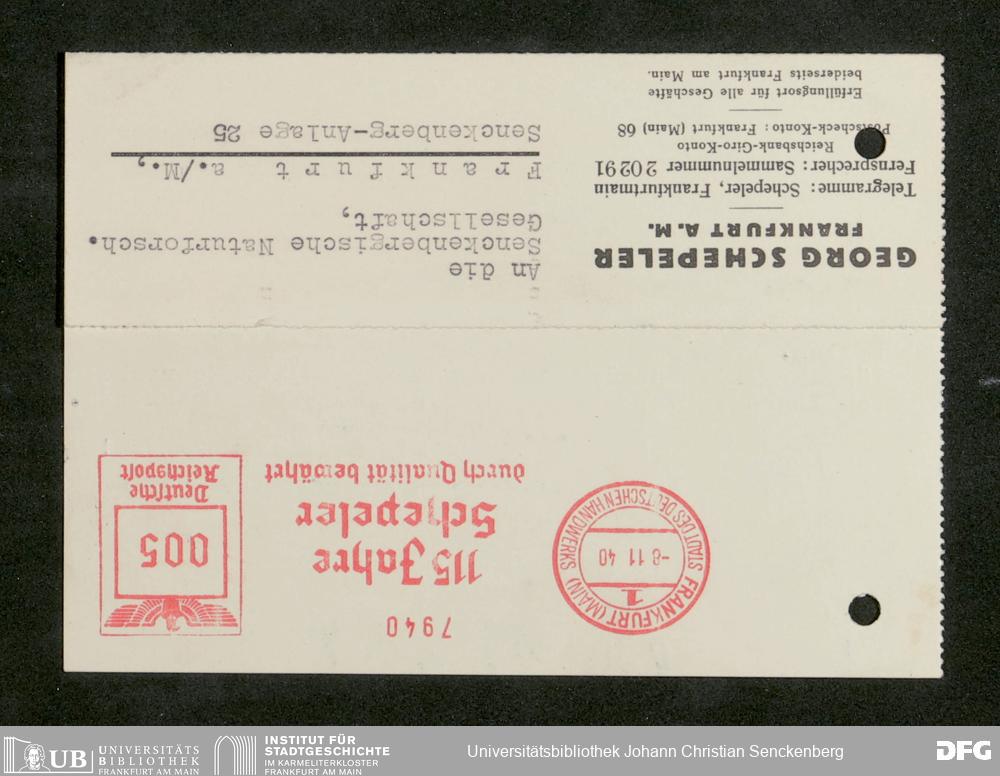 V176 Senckenberg Gesellschaft für Naturforschung, 641 - Vergabe von Freikarten zur Vorlesungen und Vorträgen der Senckenbergischen Naturforschenden Gesellschaft an Firmen, Lazarette und Schulen