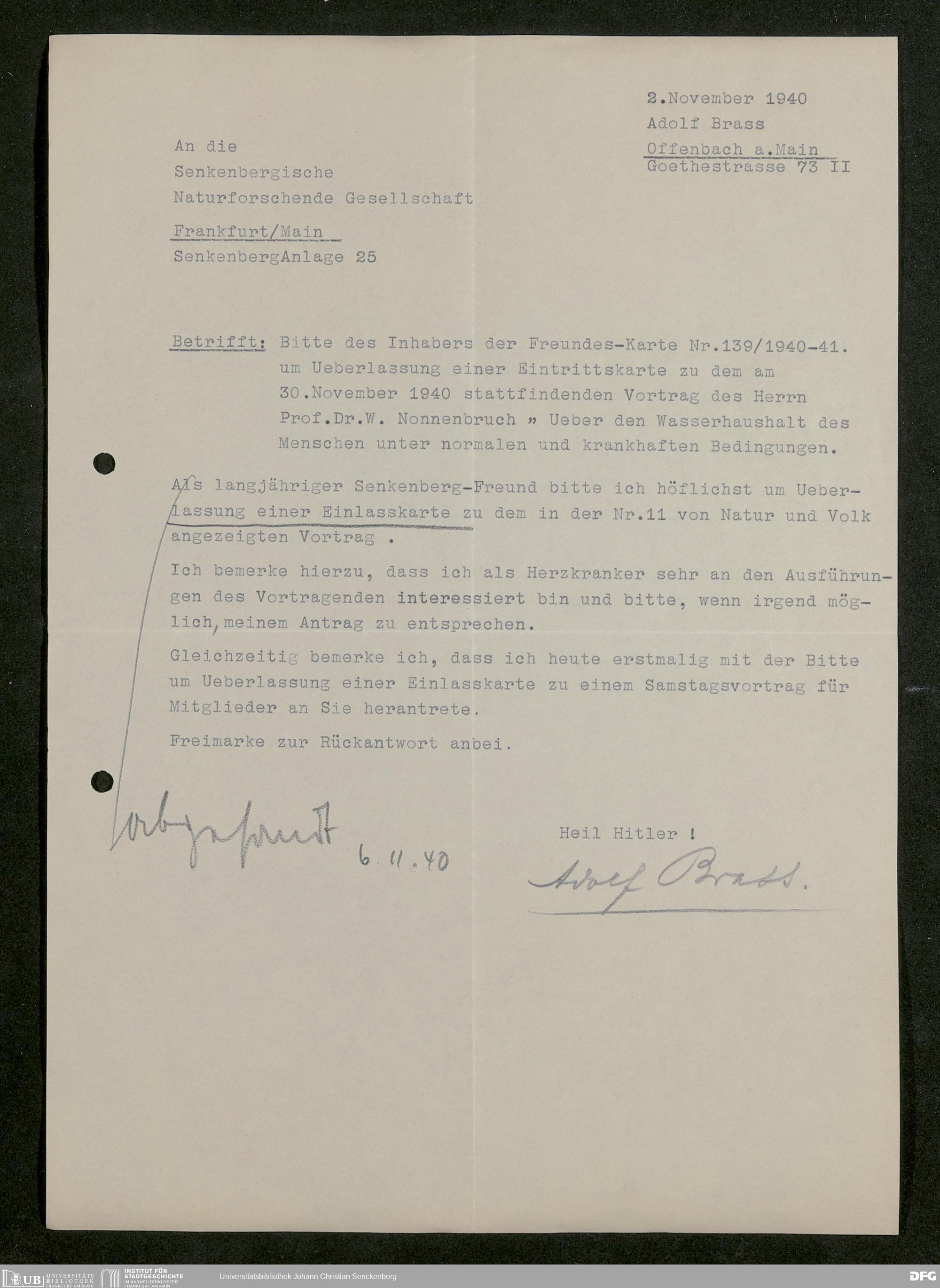 V176 Senckenberg Gesellschaft für Naturforschung, 641 - Vergabe von Freikarten zur Vorlesungen und Vorträgen der Senckenbergischen Naturforschenden Gesellschaft an Firmen, Lazarette und Schulen