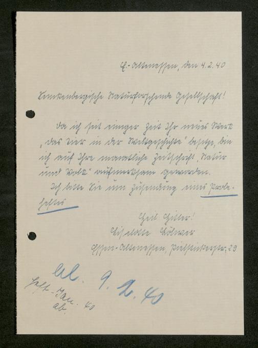 V176 Senckenberg Gesellschaft für Naturforschung, 641 - Vergabe von Freikarten zur Vorlesungen und Vorträgen der Senckenbergischen Naturforschenden Gesellschaft an Firmen, Lazarette und Schulen