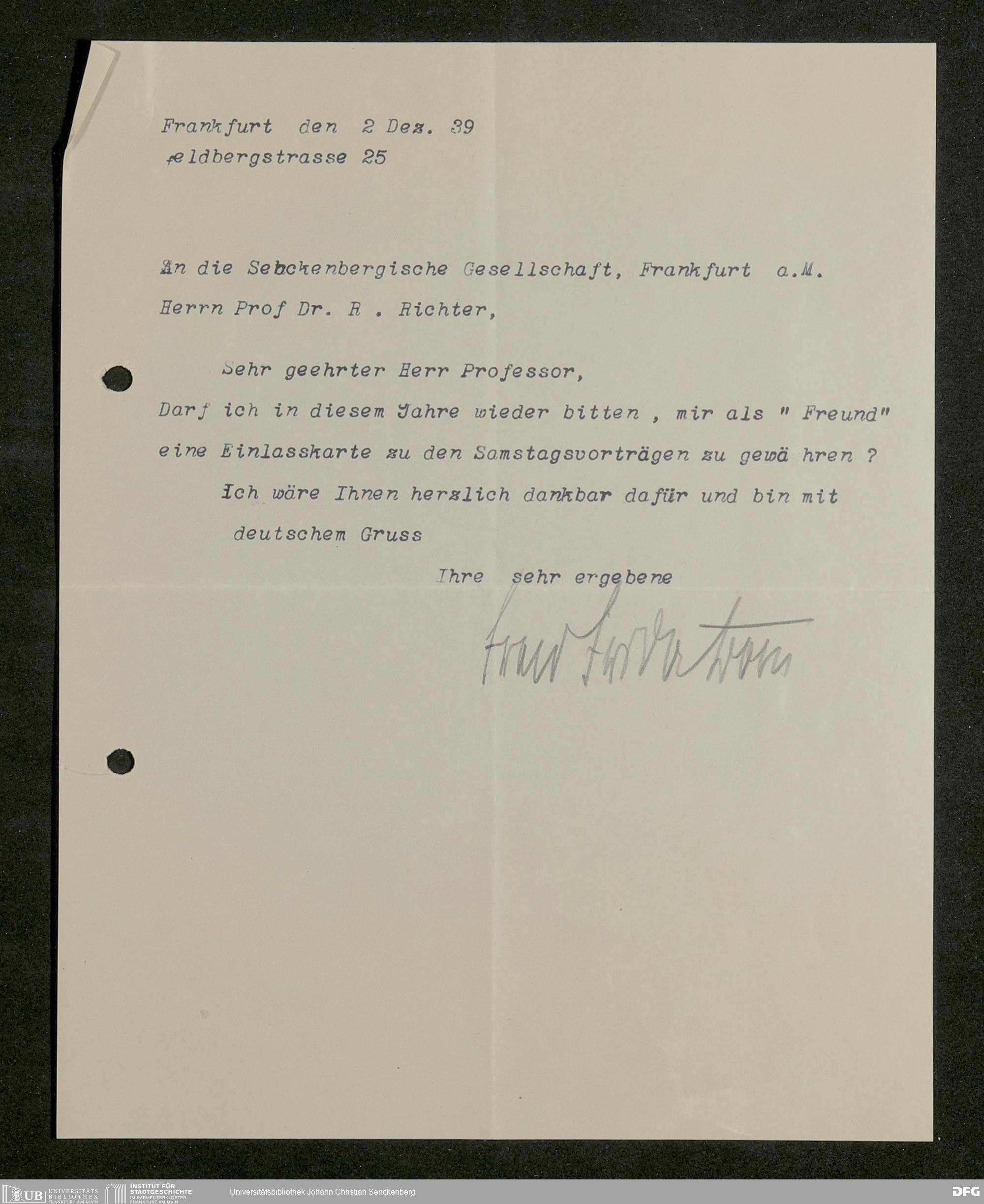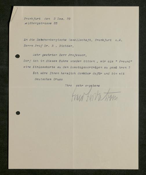 V176 Senckenberg Gesellschaft für Naturforschung, 641 - Vergabe von Freikarten zur Vorlesungen und Vorträgen der Senckenbergischen Naturforschenden Gesellschaft an Firmen, Lazarette und Schulen