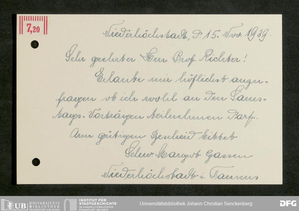 V176 Senckenberg Gesellschaft für Naturforschung, 641 - Vergabe von Freikarten zur Vorlesungen und Vorträgen der Senckenbergischen Naturforschenden Gesellschaft an Firmen, Lazarette und Schulen