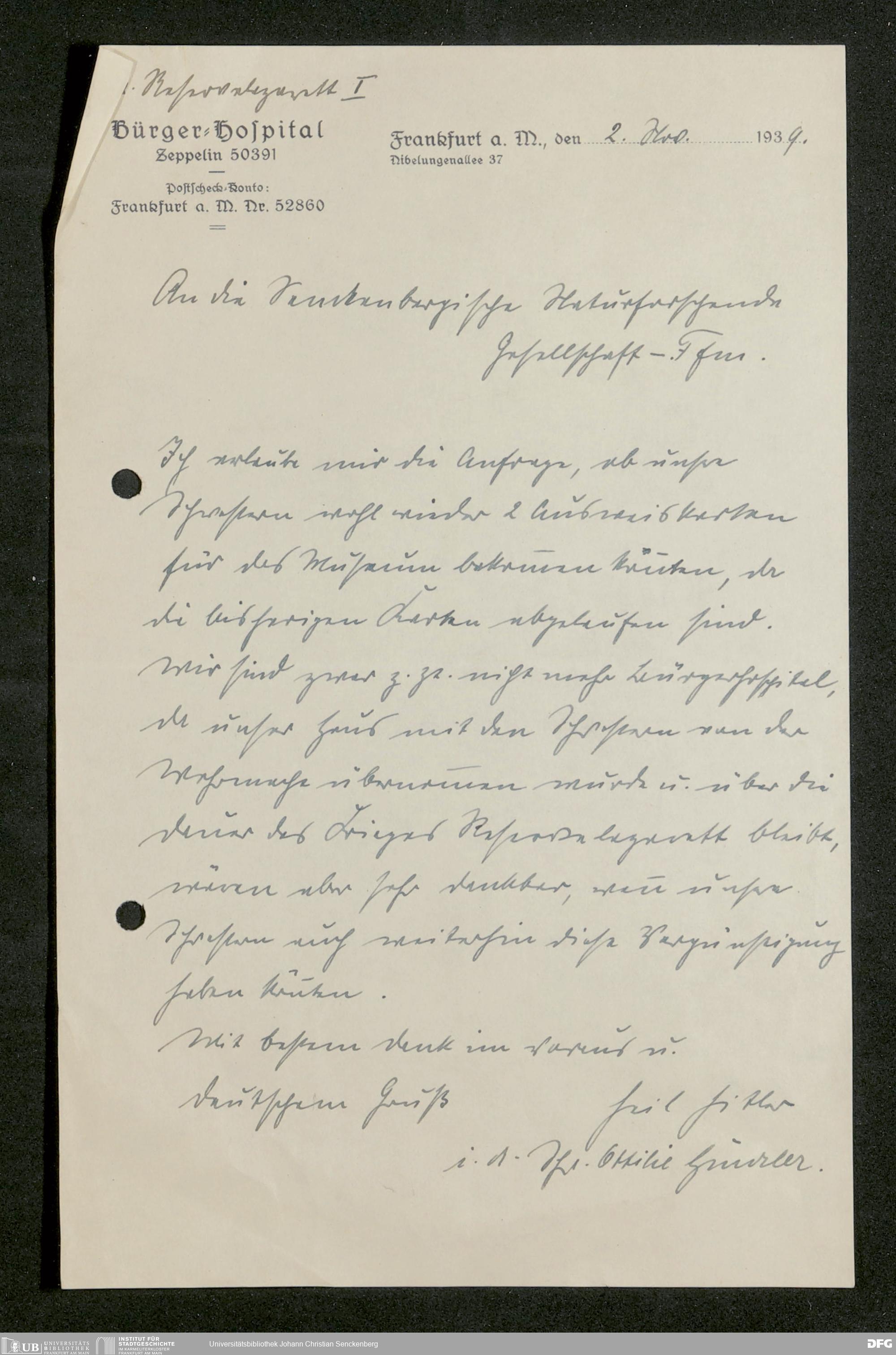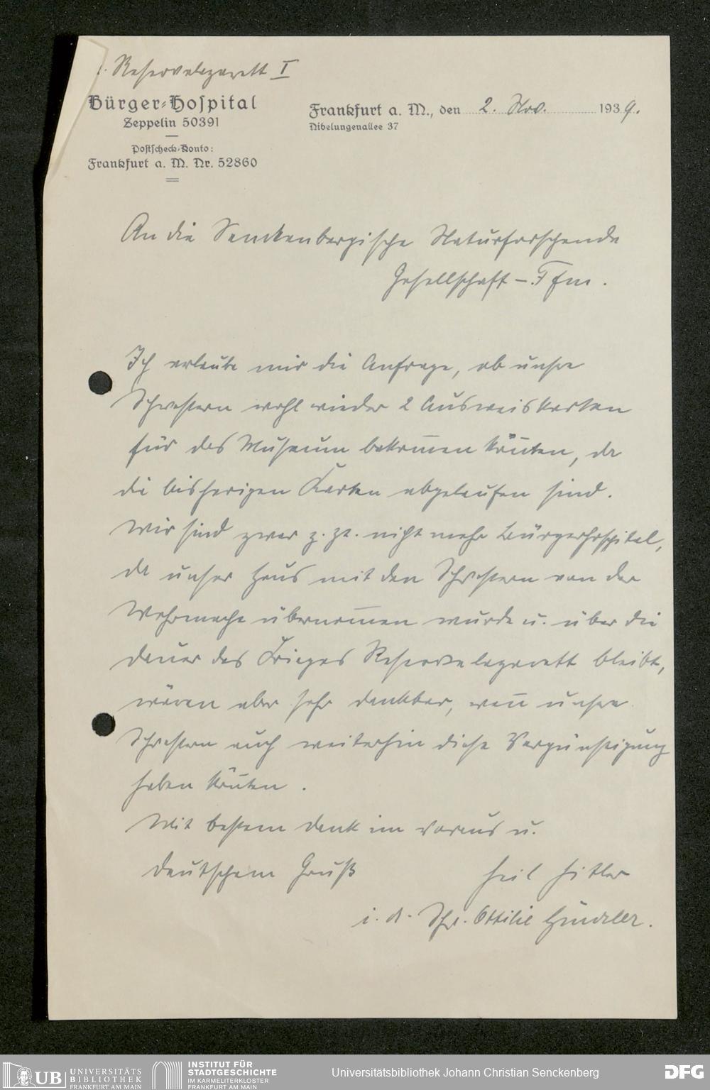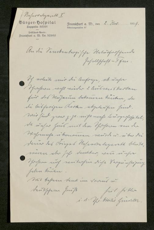 V176 Senckenberg Gesellschaft für Naturforschung, 641 - Vergabe von Freikarten zur Vorlesungen und Vorträgen der Senckenbergischen Naturforschenden Gesellschaft an Firmen, Lazarette und Schulen