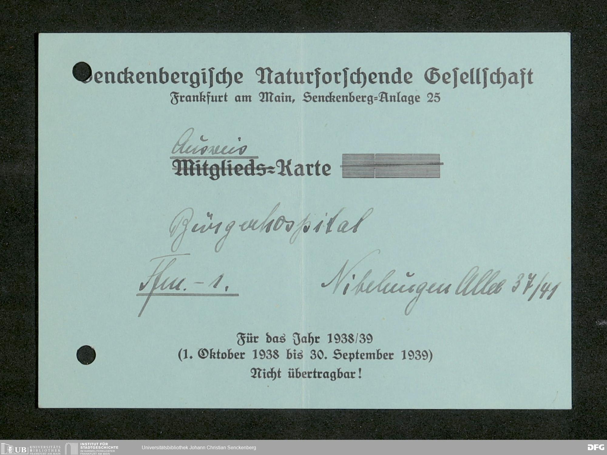 V176 Senckenberg Gesellschaft für Naturforschung, 641 - Vergabe von Freikarten zur Vorlesungen und Vorträgen der Senckenbergischen Naturforschenden Gesellschaft an Firmen, Lazarette und Schulen