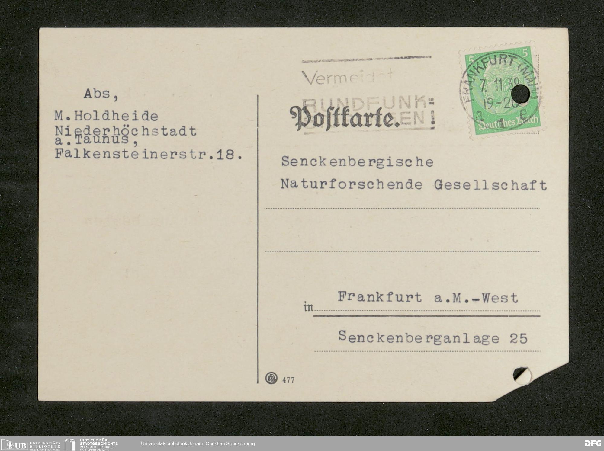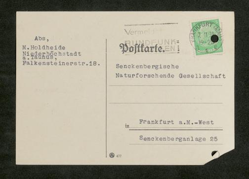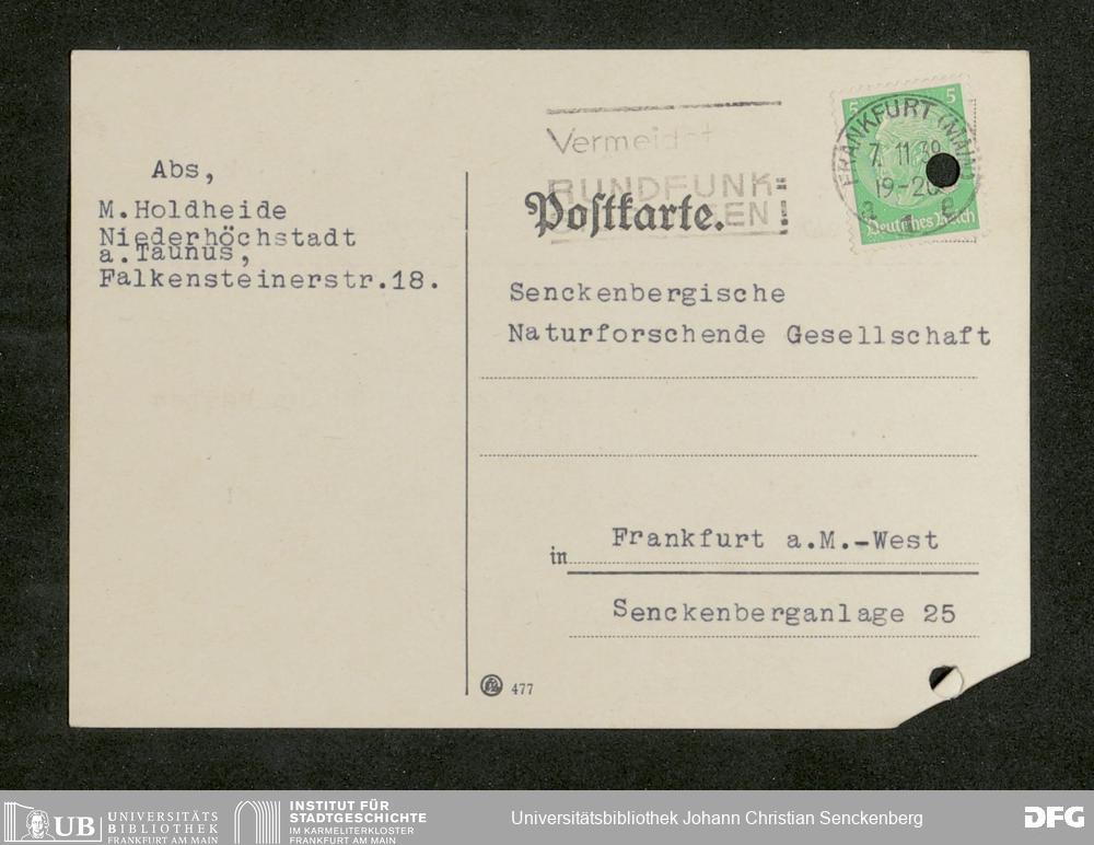 V176 Senckenberg Gesellschaft für Naturforschung, 641 - Vergabe von Freikarten zur Vorlesungen und Vorträgen der Senckenbergischen Naturforschenden Gesellschaft an Firmen, Lazarette und Schulen