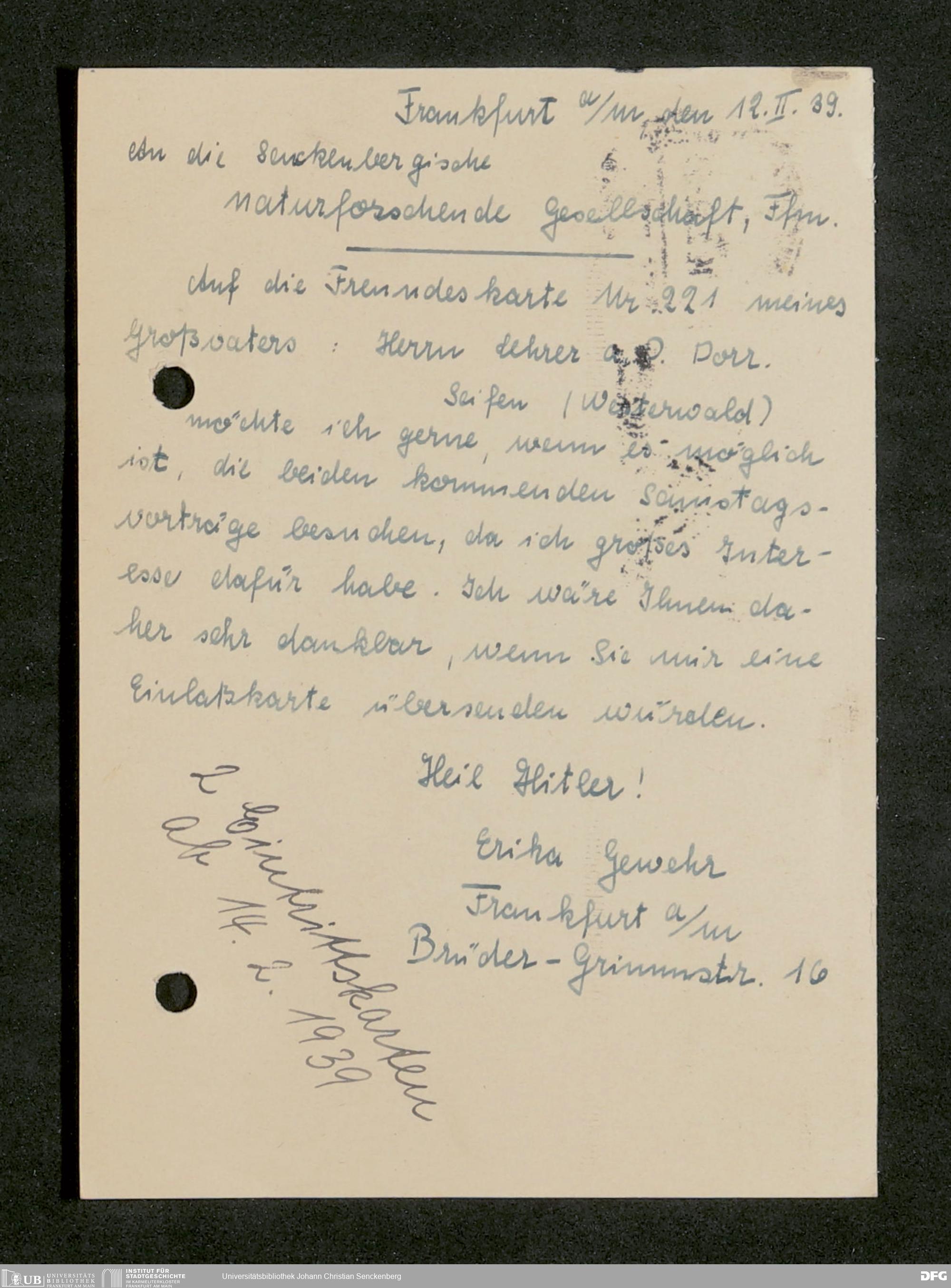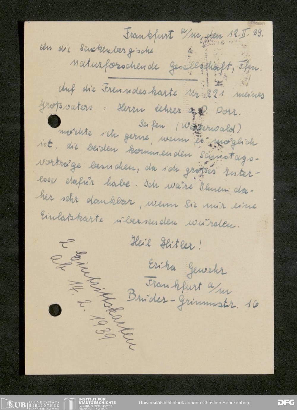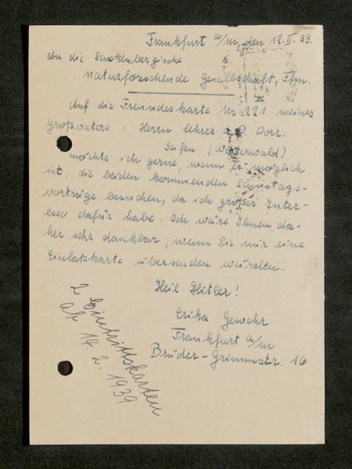 V176 Senckenberg Gesellschaft für Naturforschung, 641 - Vergabe von Freikarten zur Vorlesungen und Vorträgen der Senckenbergischen Naturforschenden Gesellschaft an Firmen, Lazarette und Schulen