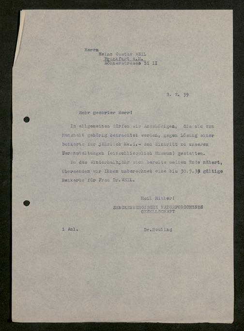 V176 Senckenberg Gesellschaft für Naturforschung, 641 - Vergabe von Freikarten zur Vorlesungen und Vorträgen der Senckenbergischen Naturforschenden Gesellschaft an Firmen, Lazarette und Schulen