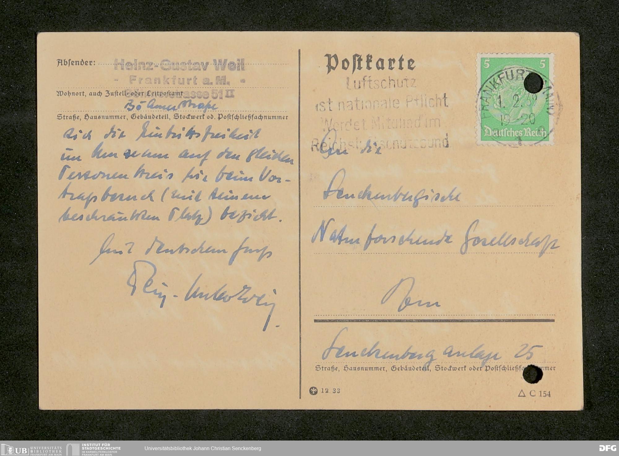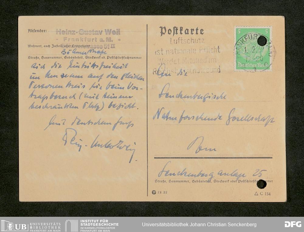 V176 Senckenberg Gesellschaft für Naturforschung, 641 - Vergabe von Freikarten zur Vorlesungen und Vorträgen der Senckenbergischen Naturforschenden Gesellschaft an Firmen, Lazarette und Schulen