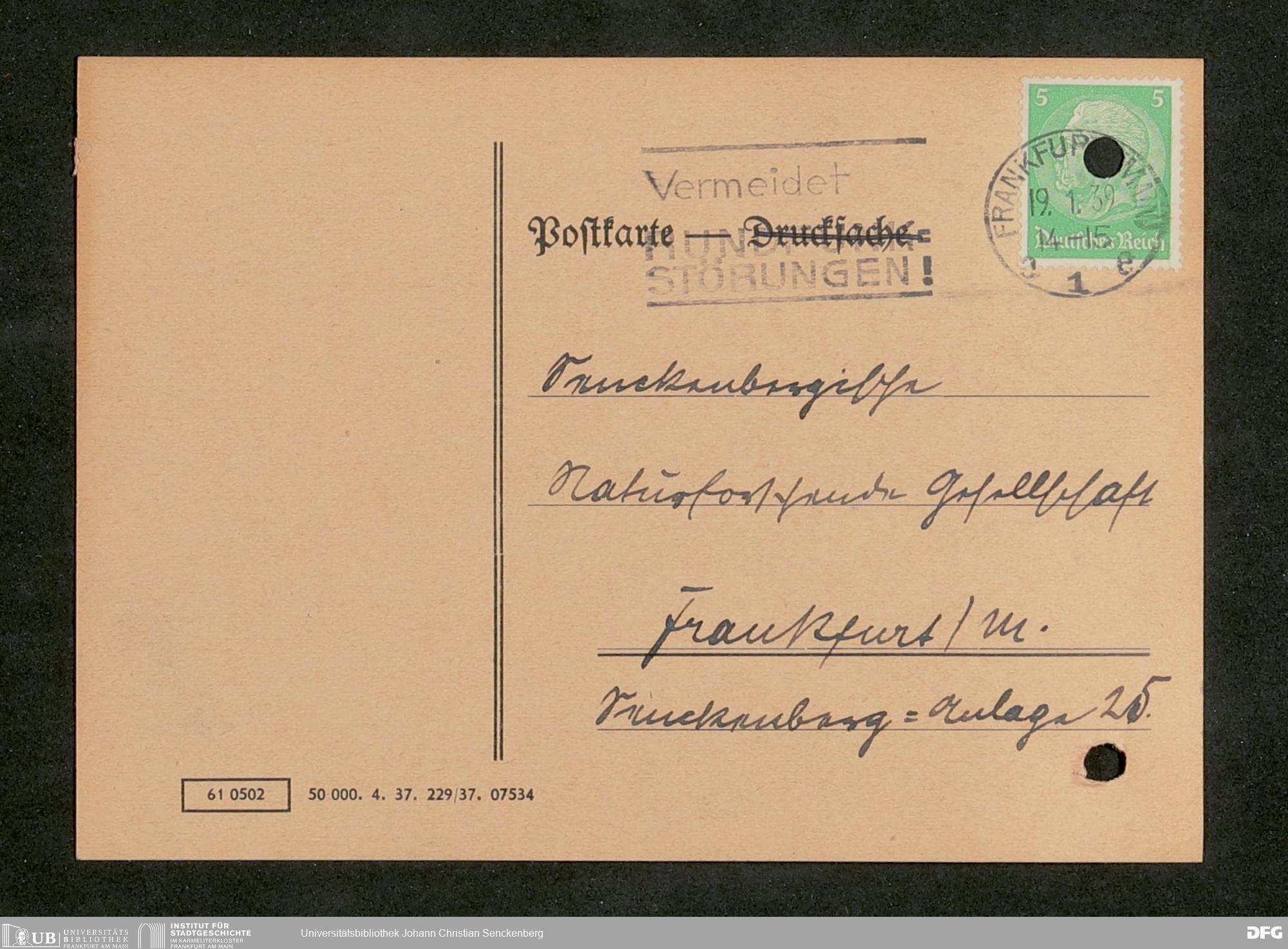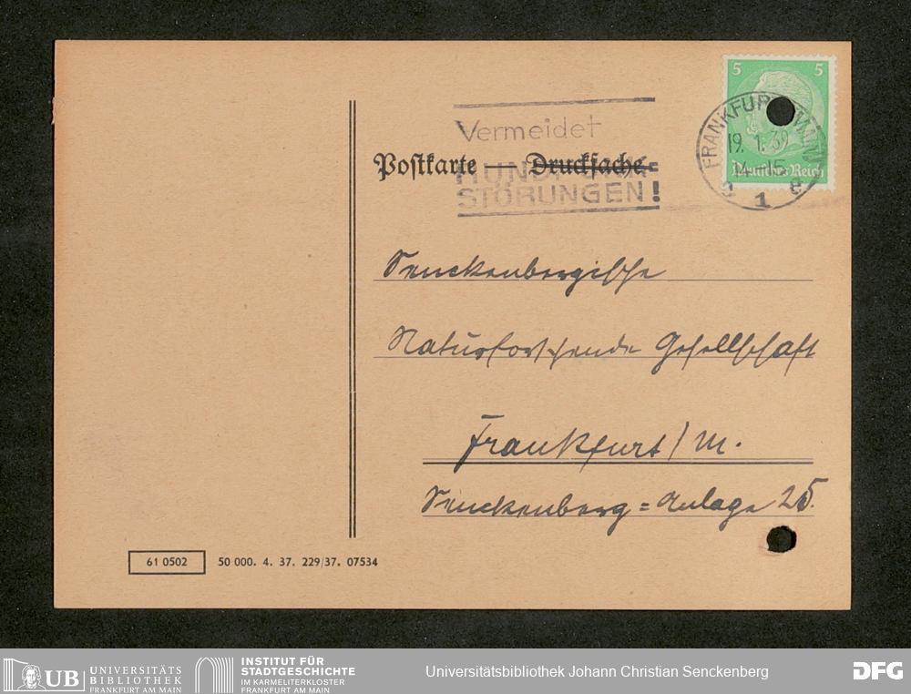 V176 Senckenberg Gesellschaft für Naturforschung, 641 - Vergabe von Freikarten zur Vorlesungen und Vorträgen der Senckenbergischen Naturforschenden Gesellschaft an Firmen, Lazarette und Schulen