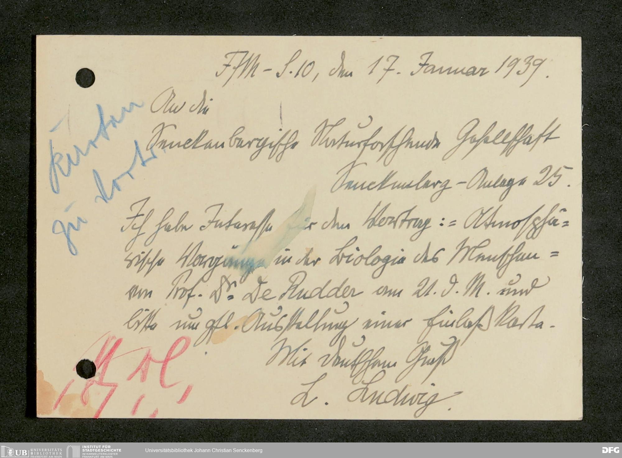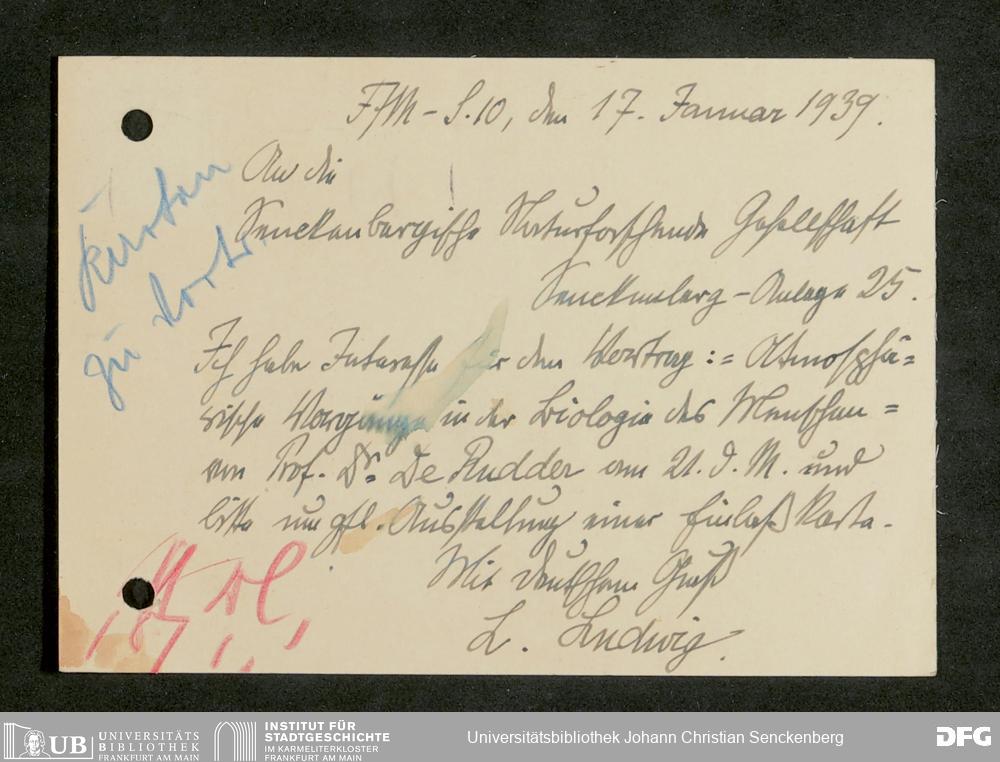 V176 Senckenberg Gesellschaft für Naturforschung, 641 - Vergabe von Freikarten zur Vorlesungen und Vorträgen der Senckenbergischen Naturforschenden Gesellschaft an Firmen, Lazarette und Schulen