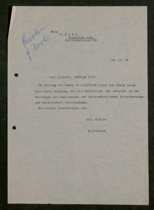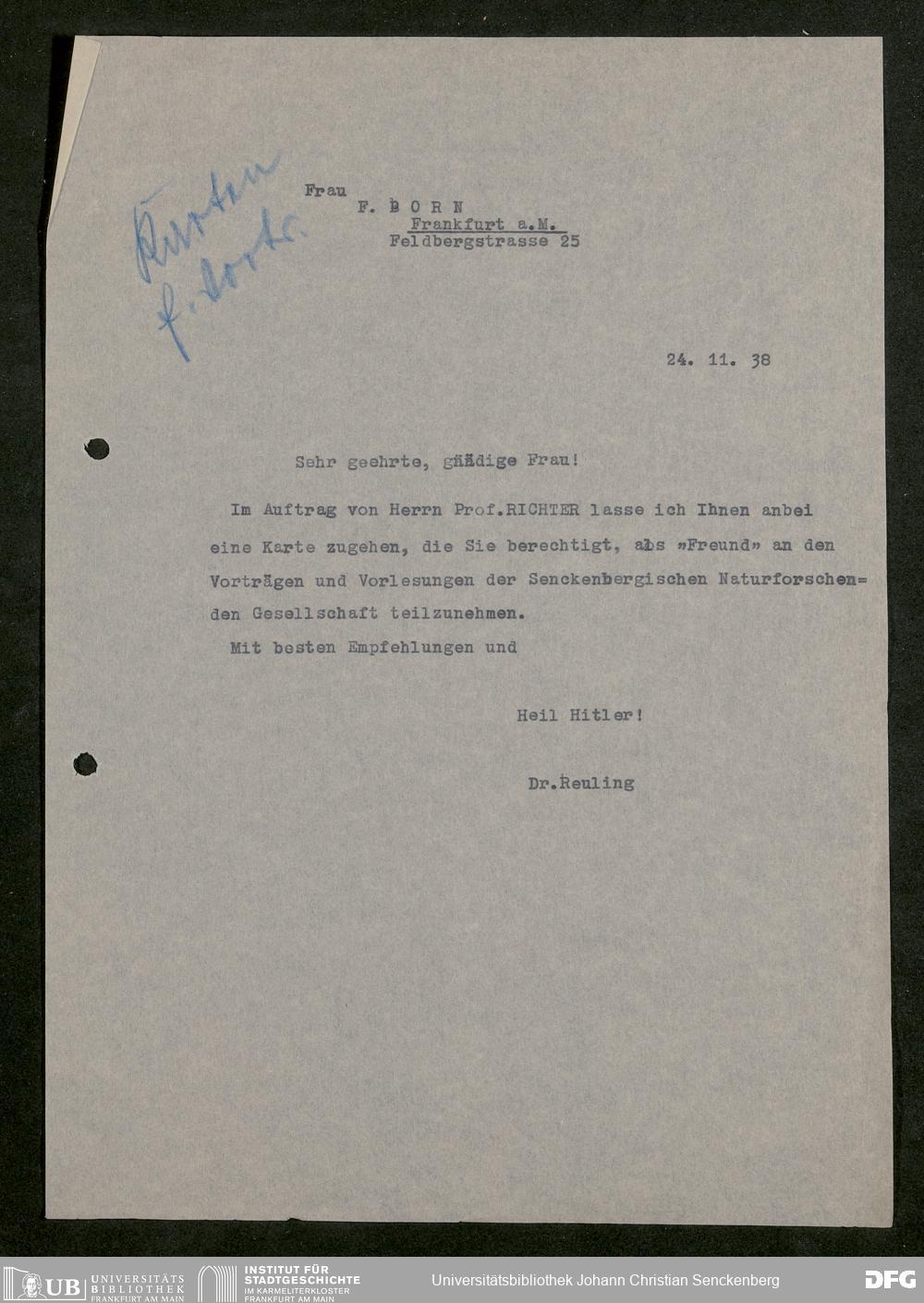 V176 Senckenberg Gesellschaft für Naturforschung, 641 - Vergabe von Freikarten zur Vorlesungen und Vorträgen der Senckenbergischen Naturforschenden Gesellschaft an Firmen, Lazarette und Schulen