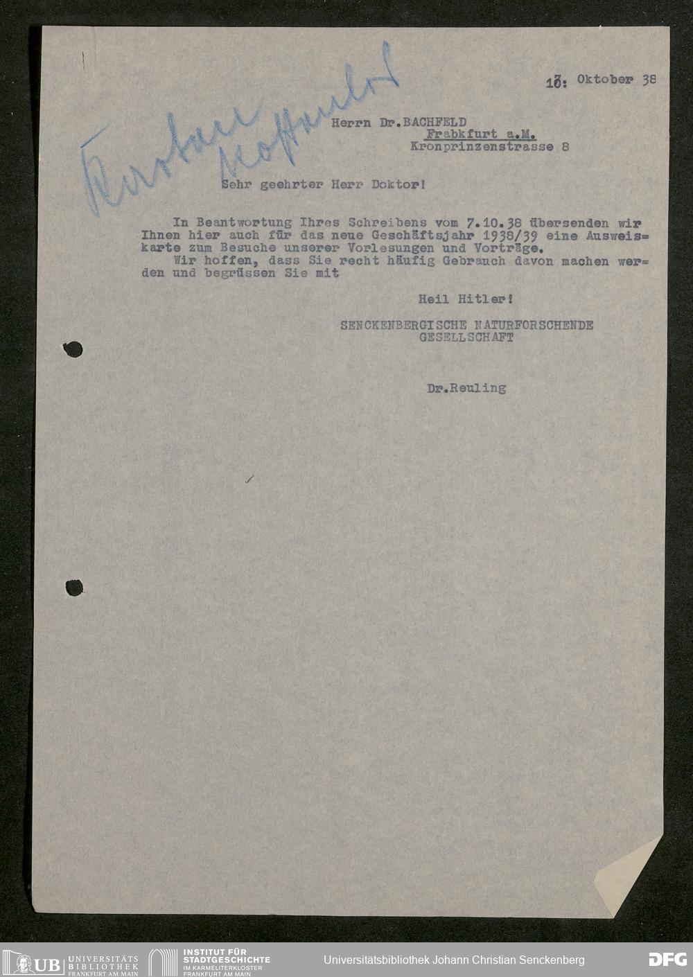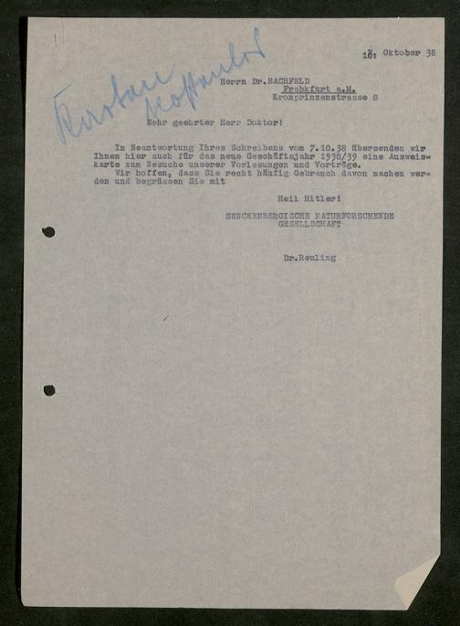 V176 Senckenberg Gesellschaft für Naturforschung, 641 - Vergabe von Freikarten zur Vorlesungen und Vorträgen der Senckenbergischen Naturforschenden Gesellschaft an Firmen, Lazarette und Schulen
