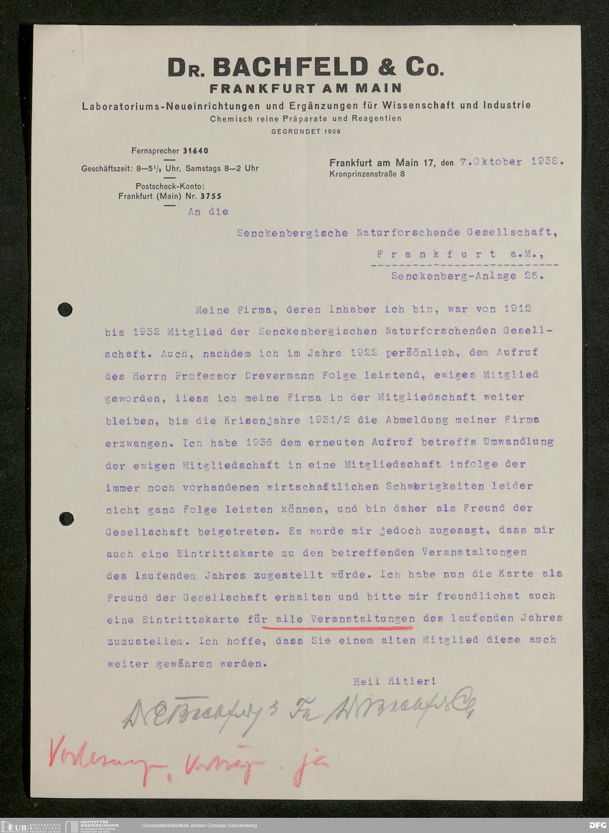 V176 Senckenberg Gesellschaft für Naturforschung, 641 - Vergabe von Freikarten zur Vorlesungen und Vorträgen der Senckenbergischen Naturforschenden Gesellschaft an Firmen, Lazarette und Schulen