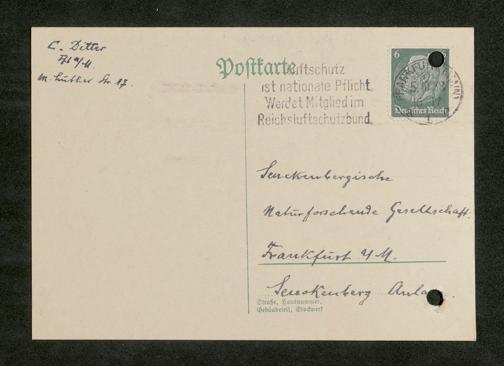 V176 Senckenberg Gesellschaft für Naturforschung, 641 - Vergabe von Freikarten zur Vorlesungen und Vorträgen der Senckenbergischen Naturforschenden Gesellschaft an Firmen, Lazarette und Schulen