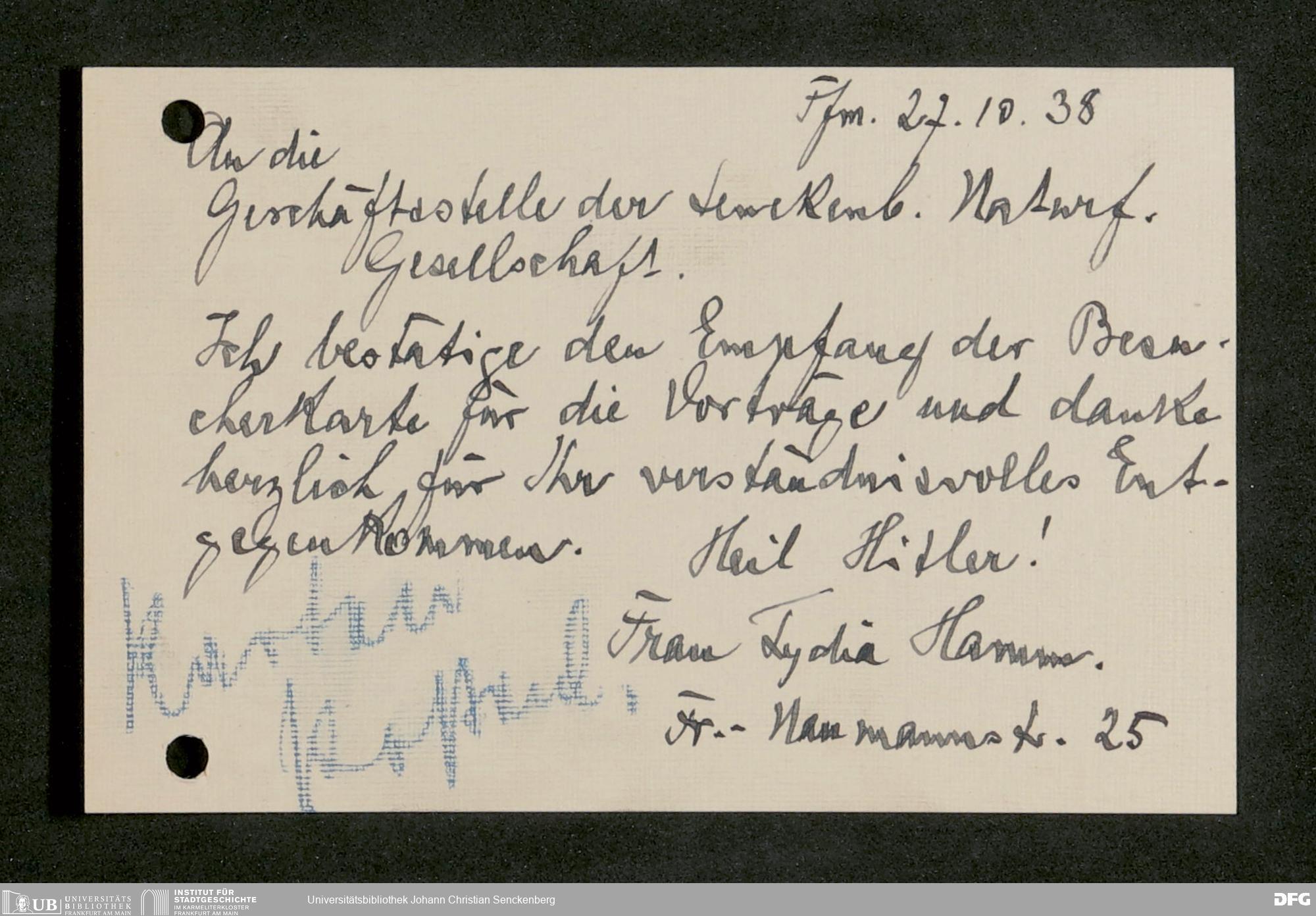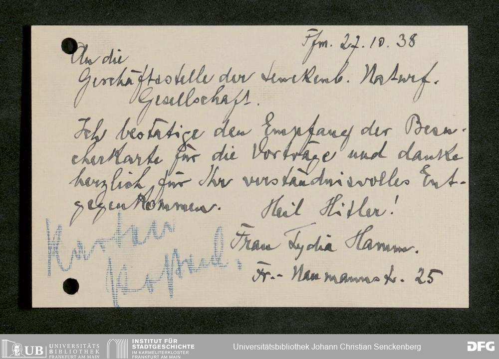 V176 Senckenberg Gesellschaft für Naturforschung, 641 - Vergabe von Freikarten zur Vorlesungen und Vorträgen der Senckenbergischen Naturforschenden Gesellschaft an Firmen, Lazarette und Schulen