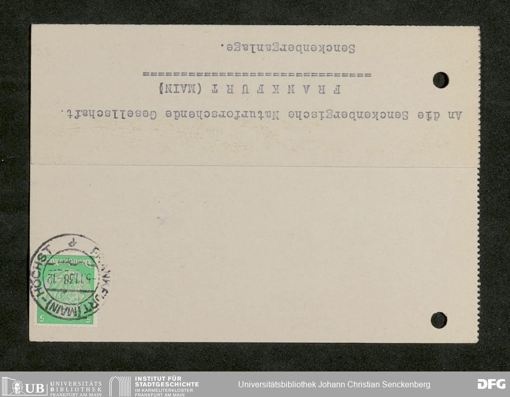 V176 Senckenberg Gesellschaft für Naturforschung, 641 - Vergabe von Freikarten zur Vorlesungen und Vorträgen der Senckenbergischen Naturforschenden Gesellschaft an Firmen, Lazarette und Schulen