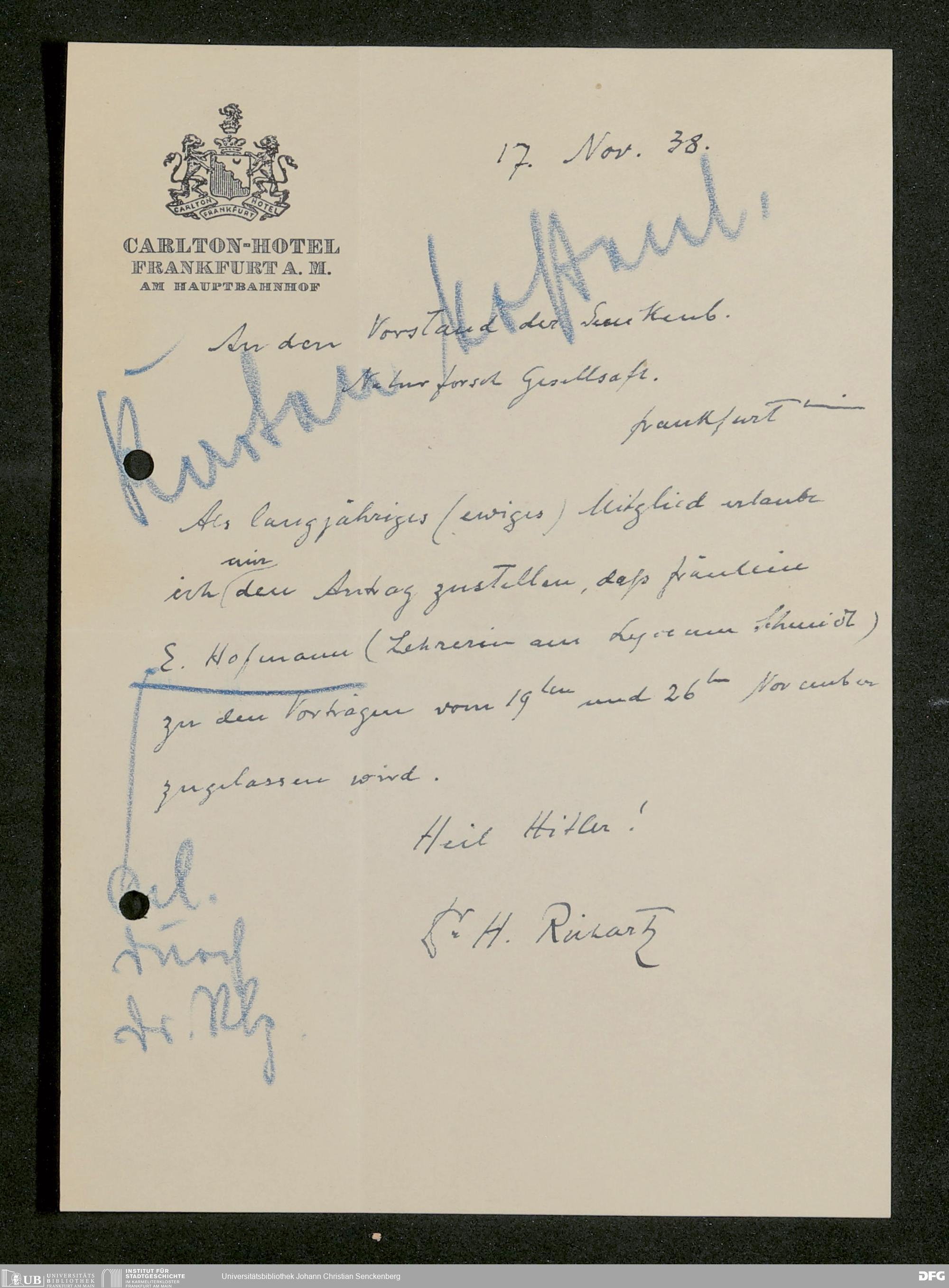 V176 Senckenberg Gesellschaft für Naturforschung, 641 - Vergabe von Freikarten zur Vorlesungen und Vorträgen der Senckenbergischen Naturforschenden Gesellschaft an Firmen, Lazarette und Schulen