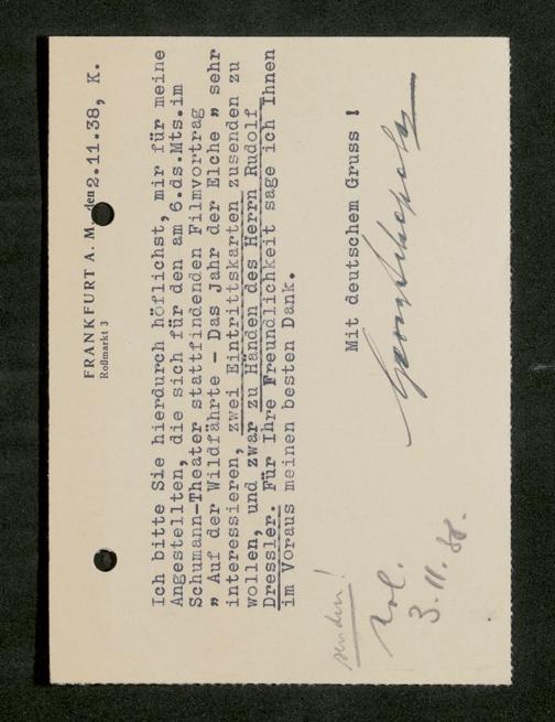 V176 Senckenberg Gesellschaft für Naturforschung, 641 - Vergabe von Freikarten zur Vorlesungen und Vorträgen der Senckenbergischen Naturforschenden Gesellschaft an Firmen, Lazarette und Schulen