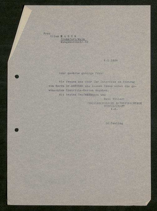 V176 Senckenberg Gesellschaft für Naturforschung, 641 - Vergabe von Freikarten zur Vorlesungen und Vorträgen der Senckenbergischen Naturforschenden Gesellschaft an Firmen, Lazarette und Schulen