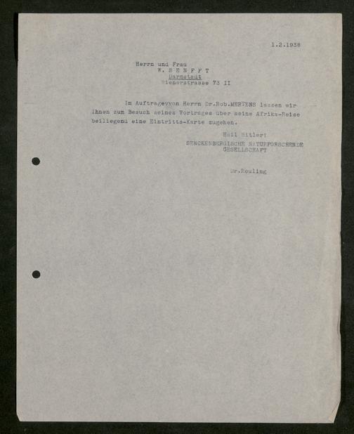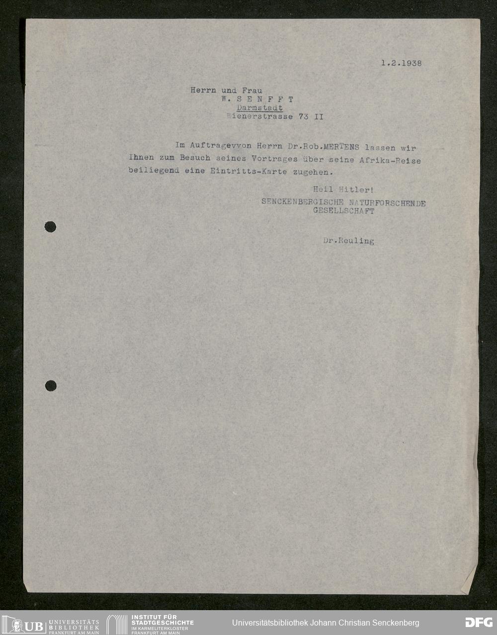 V176 Senckenberg Gesellschaft für Naturforschung, 641 - Vergabe von Freikarten zur Vorlesungen und Vorträgen der Senckenbergischen Naturforschenden Gesellschaft an Firmen, Lazarette und Schulen