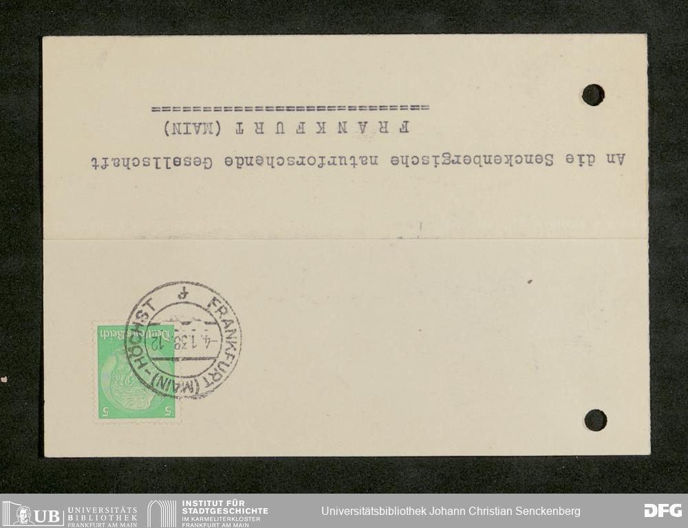 V176 Senckenberg Gesellschaft für Naturforschung, 641 - Vergabe von Freikarten zur Vorlesungen und Vorträgen der Senckenbergischen Naturforschenden Gesellschaft an Firmen, Lazarette und Schulen