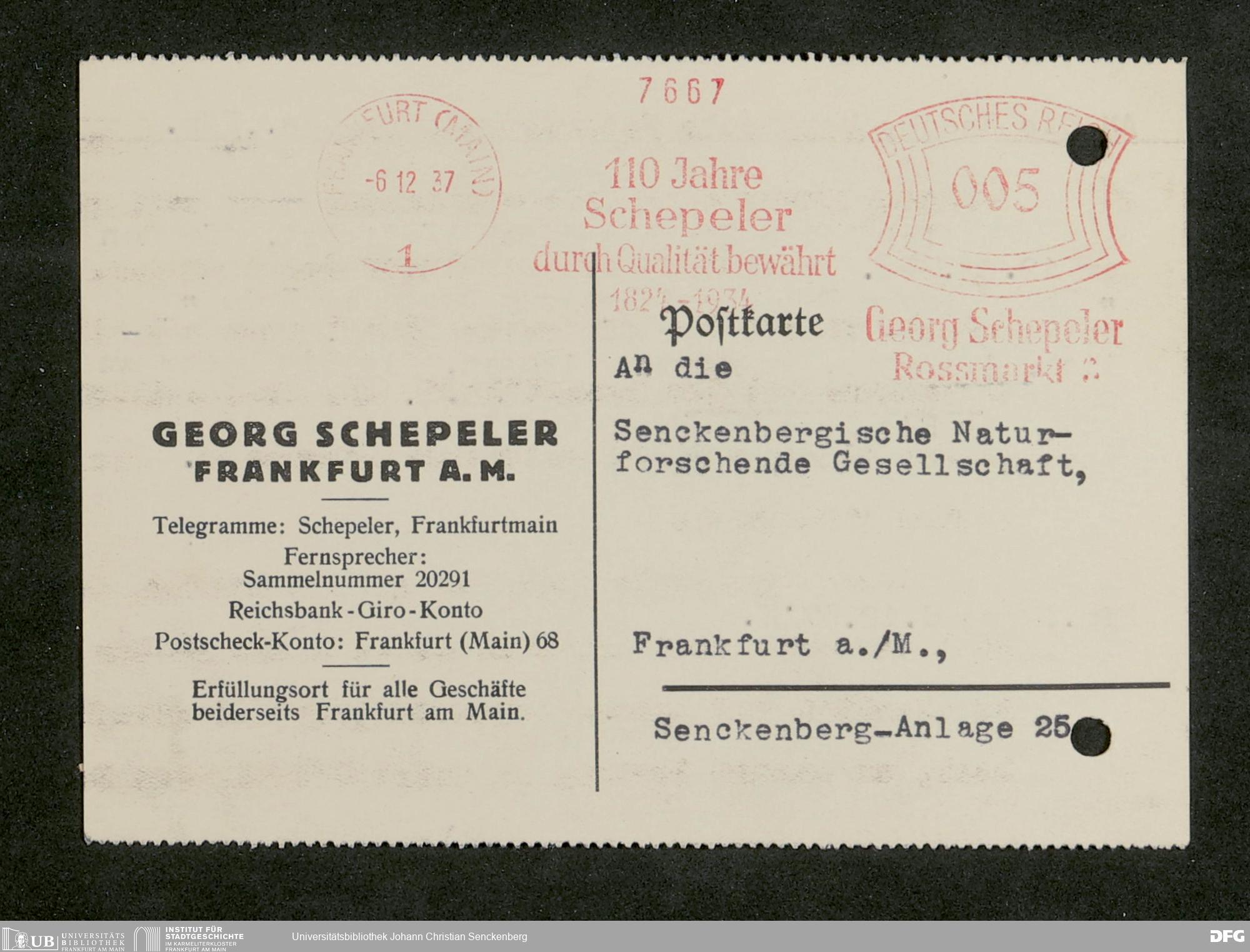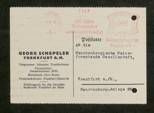 V176 Senckenberg Gesellschaft für Naturforschung, 641 - Vergabe von Freikarten zur Vorlesungen und Vorträgen der Senckenbergischen Naturforschenden Gesellschaft an Firmen, Lazarette und Schulen