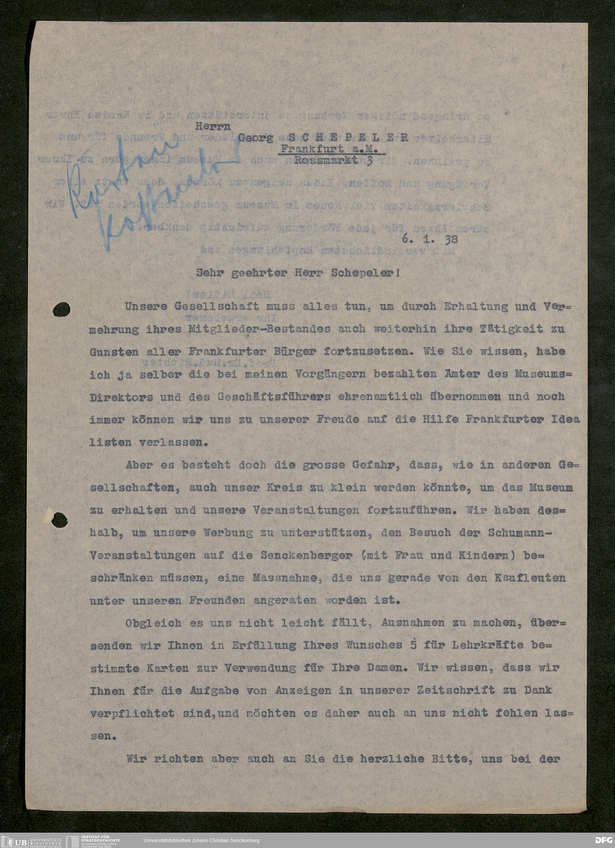 V176 Senckenberg Gesellschaft für Naturforschung, 641 - Vergabe von Freikarten zur Vorlesungen und Vorträgen der Senckenbergischen Naturforschenden Gesellschaft an Firmen, Lazarette und Schulen