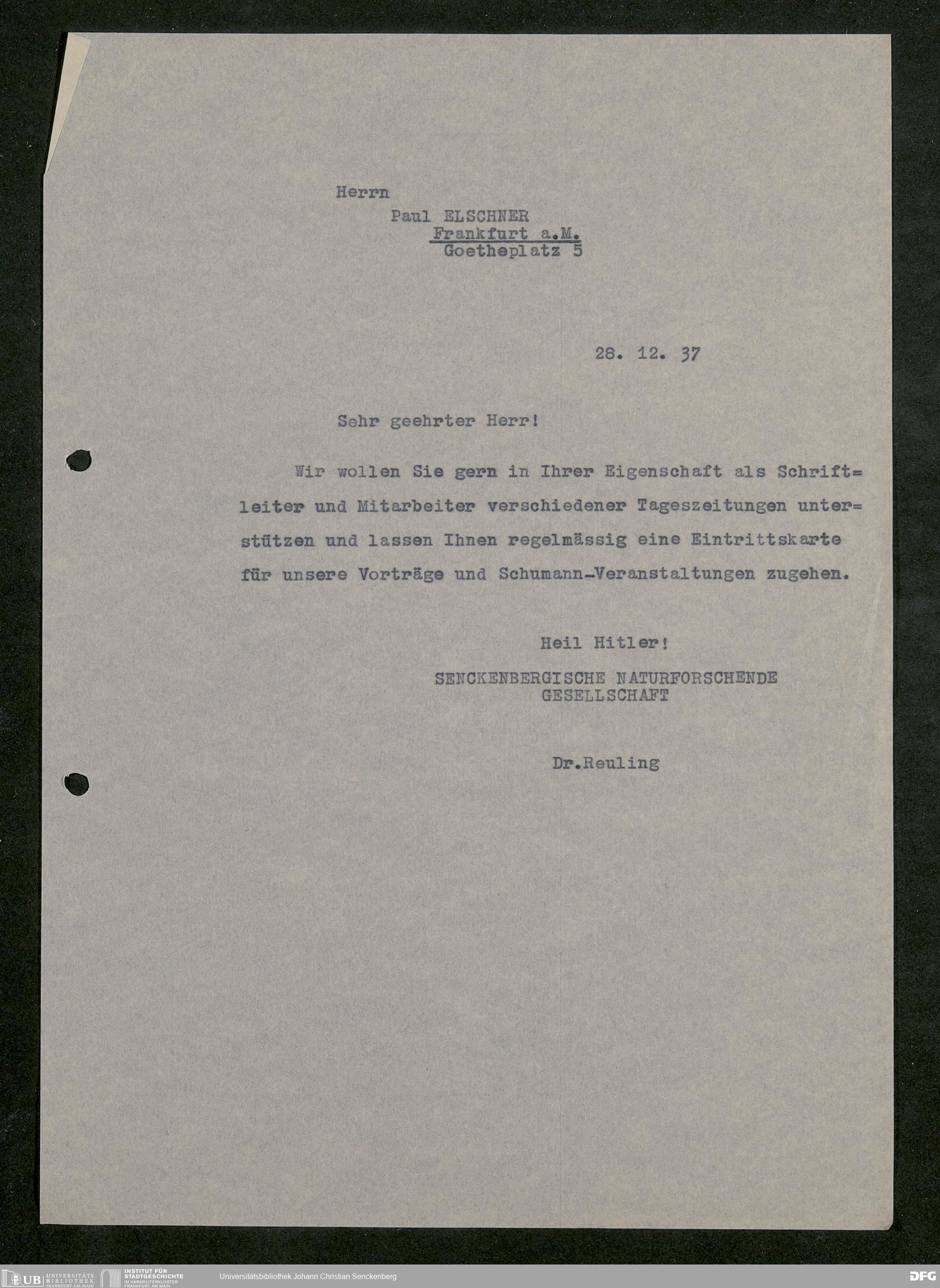 V176 Senckenberg Gesellschaft für Naturforschung, 641 - Vergabe von Freikarten zur Vorlesungen und Vorträgen der Senckenbergischen Naturforschenden Gesellschaft an Firmen, Lazarette und Schulen