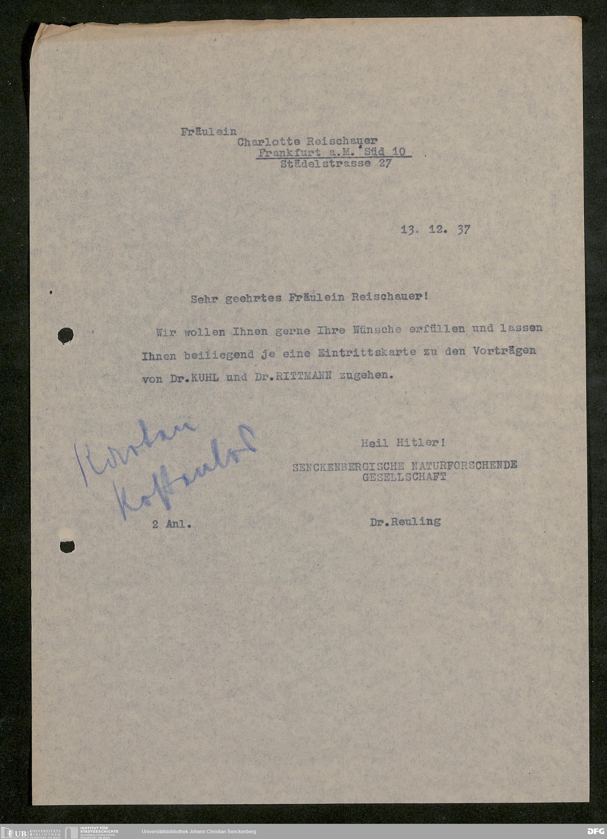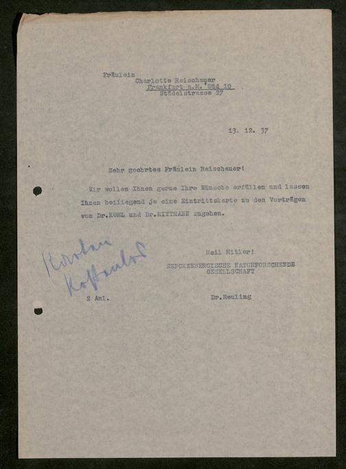 V176 Senckenberg Gesellschaft für Naturforschung, 641 - Vergabe von Freikarten zur Vorlesungen und Vorträgen der Senckenbergischen Naturforschenden Gesellschaft an Firmen, Lazarette und Schulen