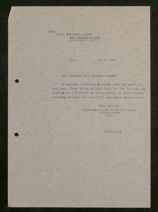 V176 Senckenberg Gesellschaft für Naturforschung, 641 - Vergabe von Freikarten zur Vorlesungen und Vorträgen der Senckenbergischen Naturforschenden Gesellschaft an Firmen, Lazarette und Schulen