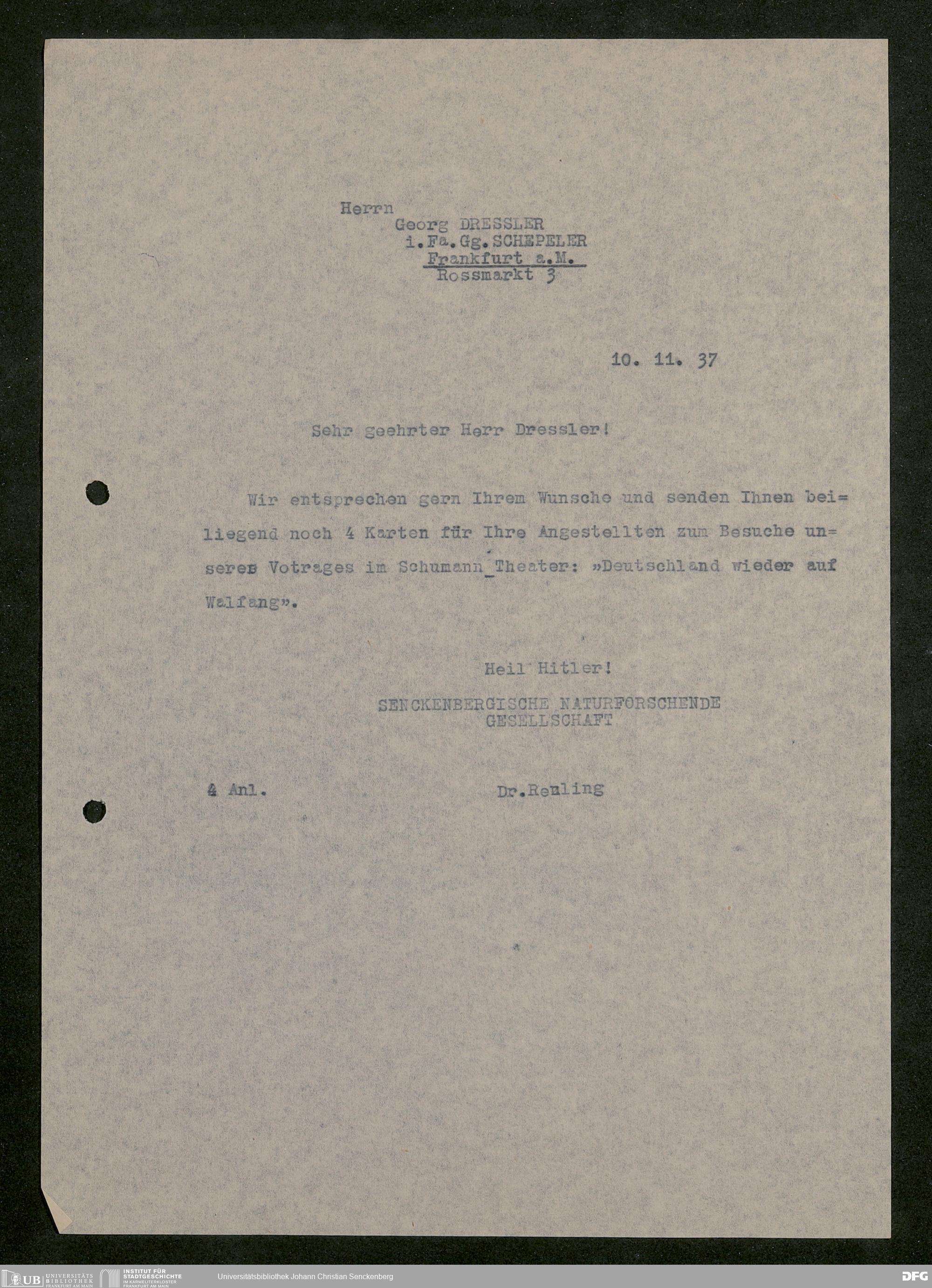 V176 Senckenberg Gesellschaft für Naturforschung, 641 - Vergabe von Freikarten zur Vorlesungen und Vorträgen der Senckenbergischen Naturforschenden Gesellschaft an Firmen, Lazarette und Schulen