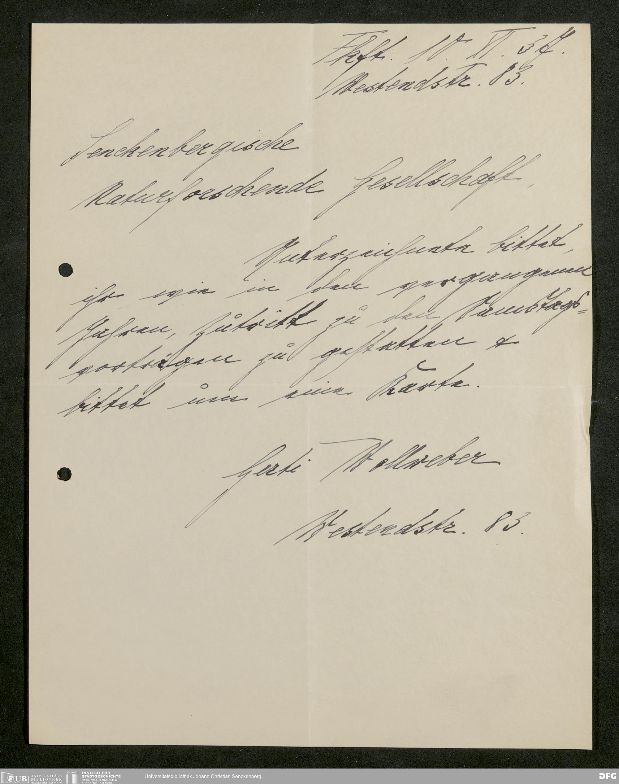 V176 Senckenberg Gesellschaft für Naturforschung, 641 - Vergabe von Freikarten zur Vorlesungen und Vorträgen der Senckenbergischen Naturforschenden Gesellschaft an Firmen, Lazarette und Schulen