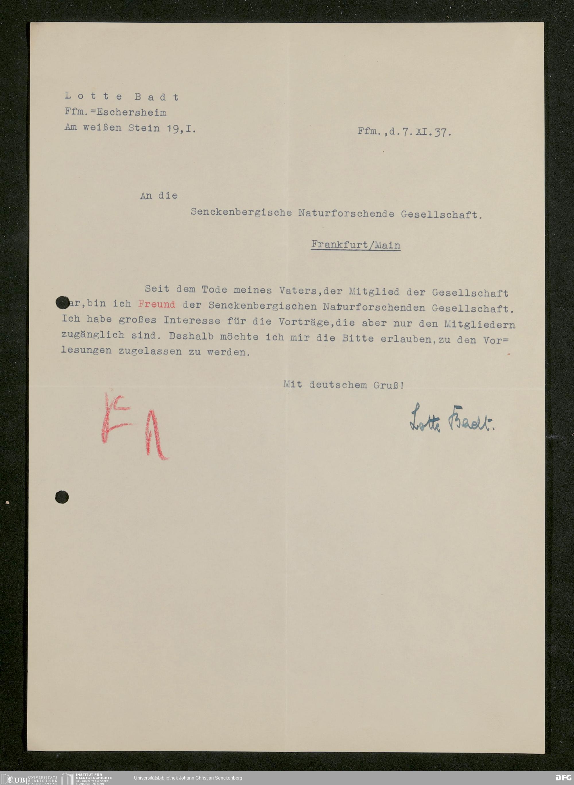 V176 Senckenberg Gesellschaft für Naturforschung, 641 - Vergabe von Freikarten zur Vorlesungen und Vorträgen der Senckenbergischen Naturforschenden Gesellschaft an Firmen, Lazarette und Schulen