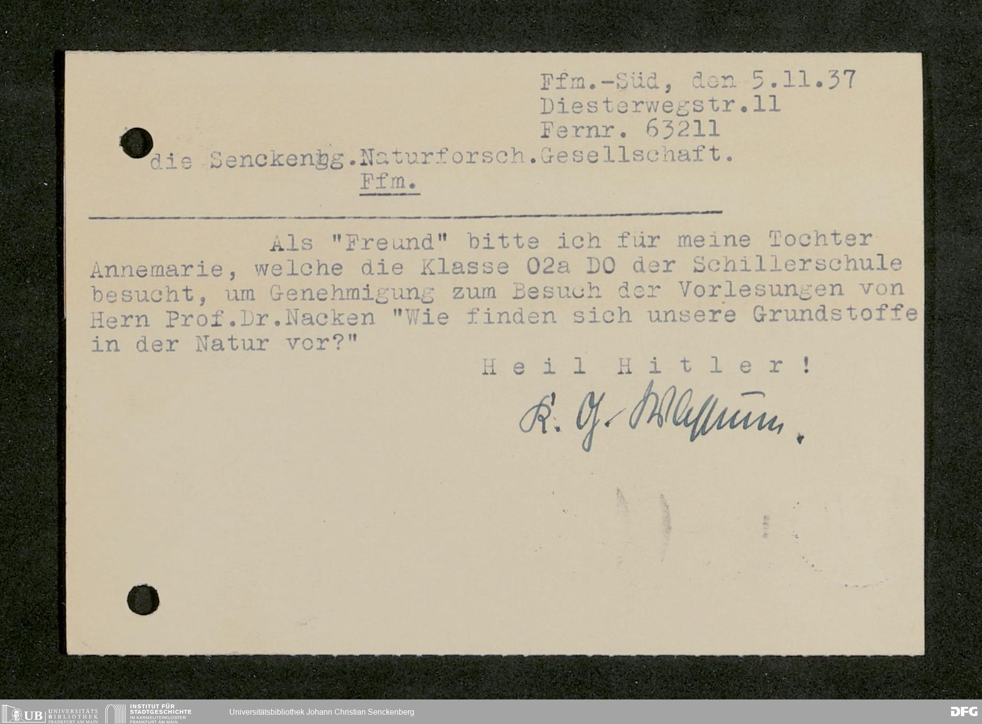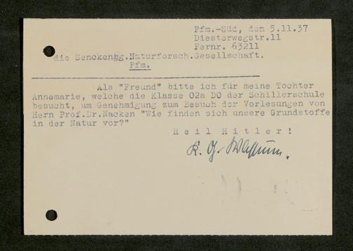 V176 Senckenberg Gesellschaft für Naturforschung, 641 - Vergabe von Freikarten zur Vorlesungen und Vorträgen der Senckenbergischen Naturforschenden Gesellschaft an Firmen, Lazarette und Schulen