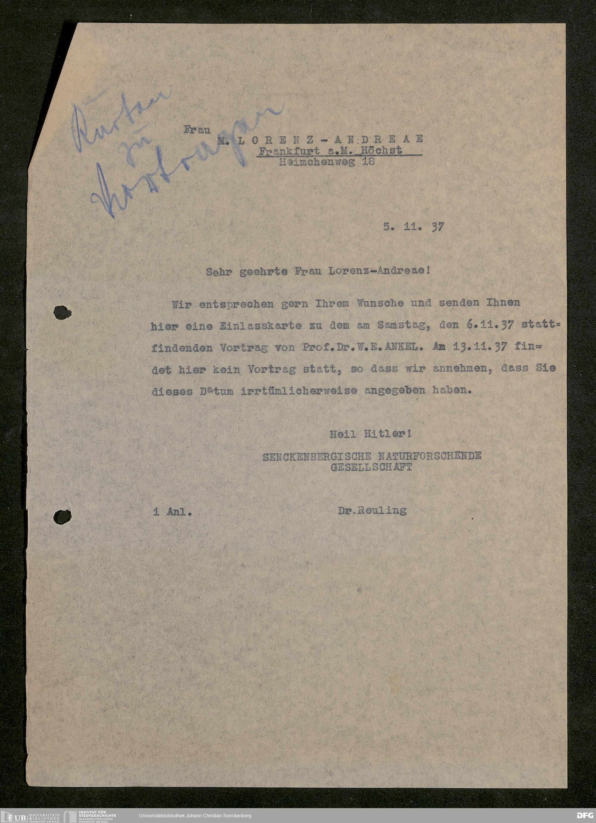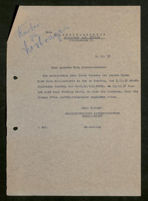 V176 Senckenberg Gesellschaft für Naturforschung, 641 - Vergabe von Freikarten zur Vorlesungen und Vorträgen der Senckenbergischen Naturforschenden Gesellschaft an Firmen, Lazarette und Schulen
