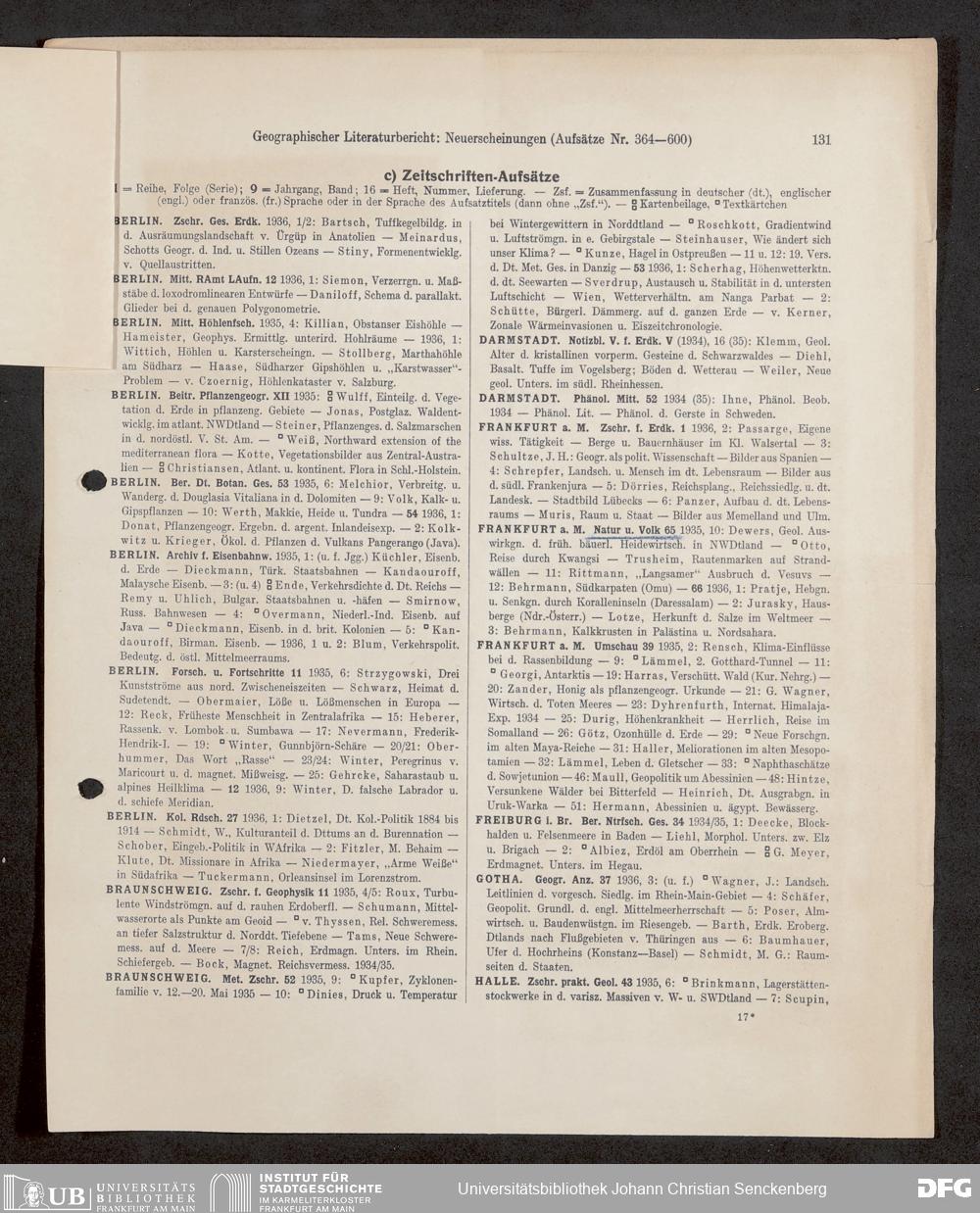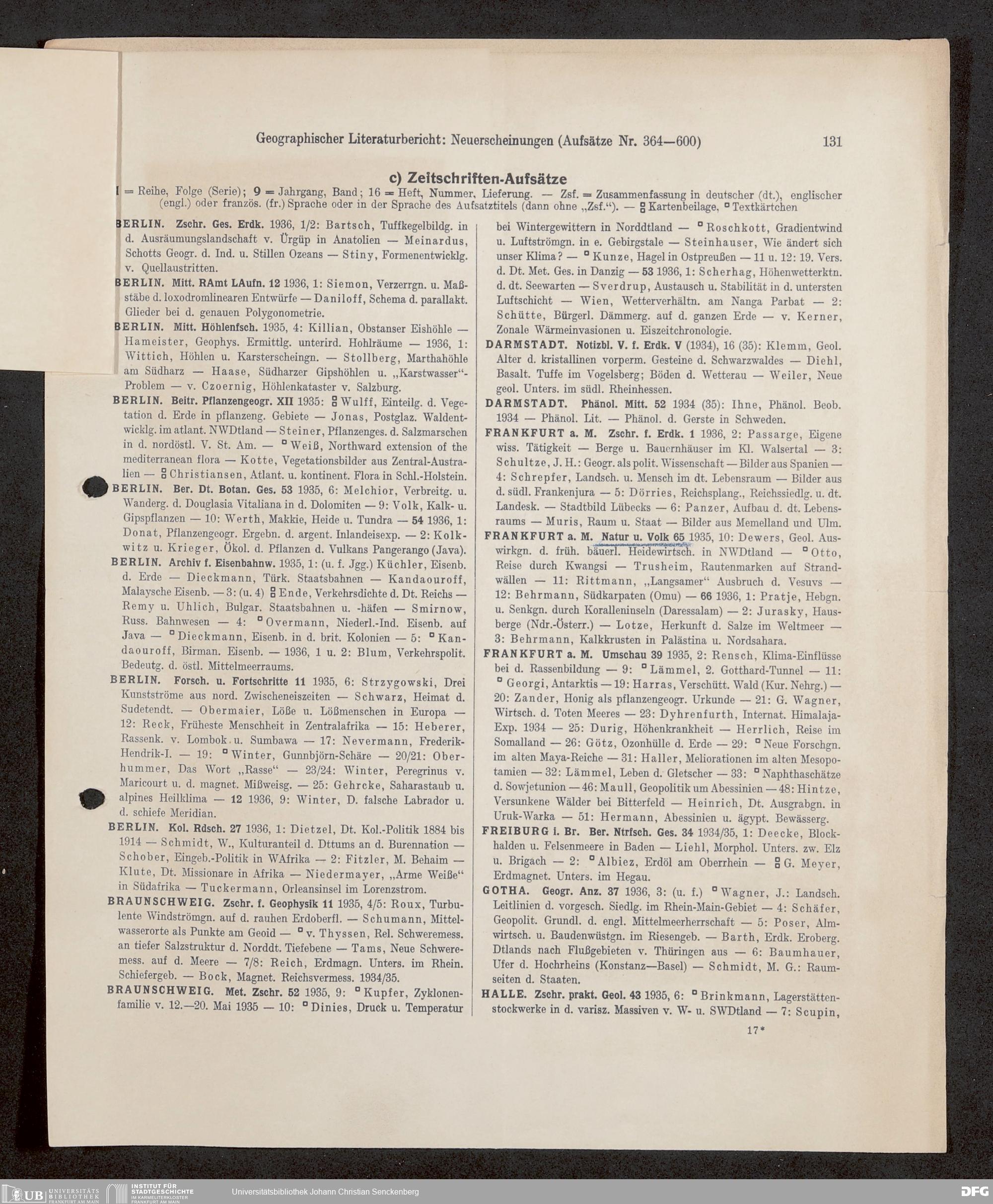 V176 Senckenberg Gesellschaft für Naturforschung, 647 - Rezensionen zu "Natur und Museum" bzw. "Natur und Volk"