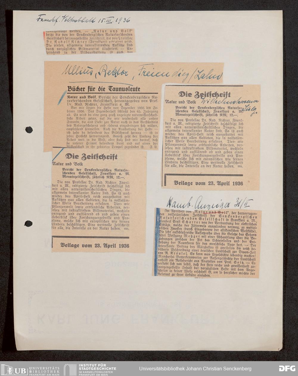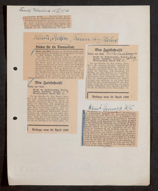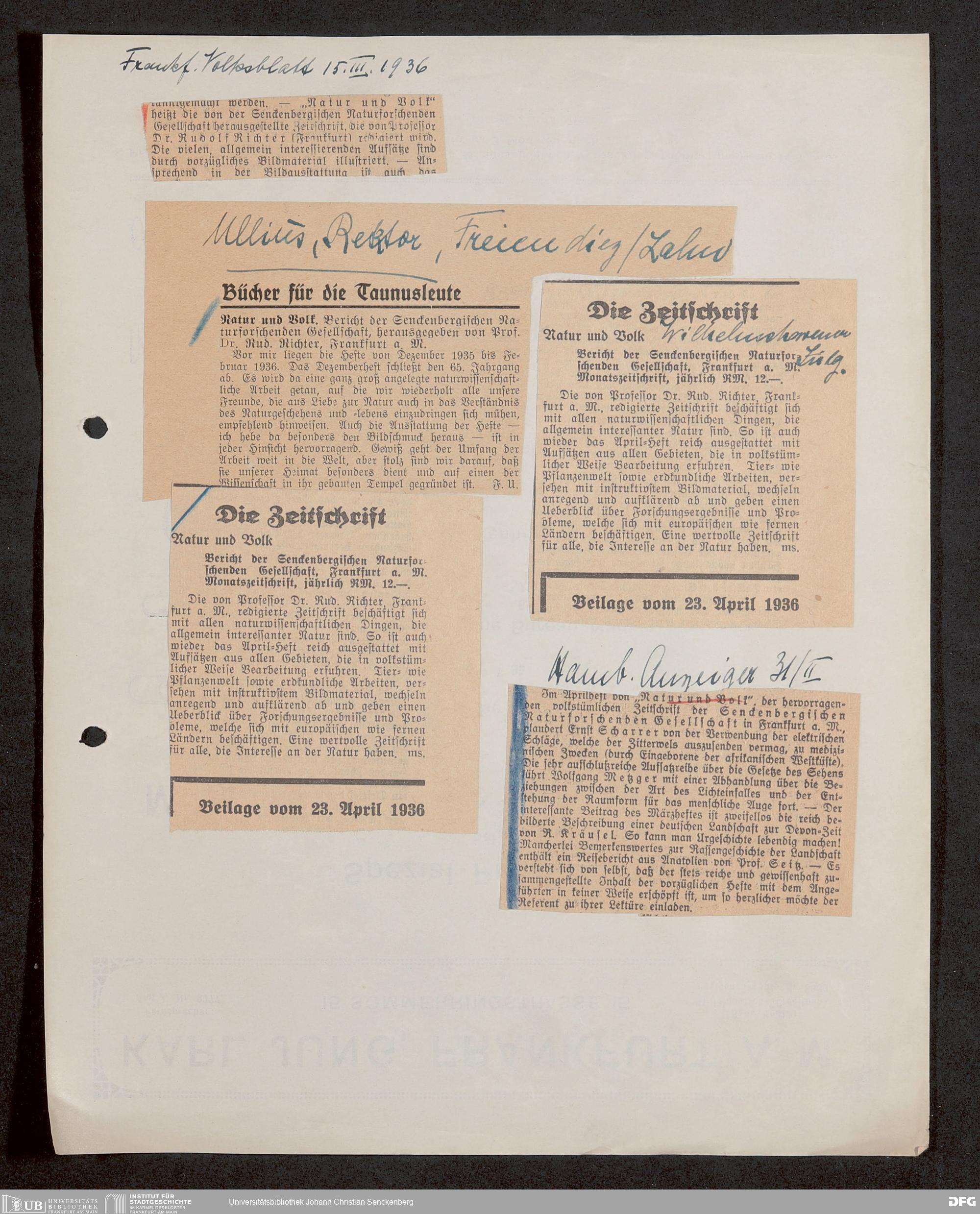 V176 Senckenberg Gesellschaft für Naturforschung, 647 - Rezensionen zu "Natur und Museum" bzw. "Natur und Volk"