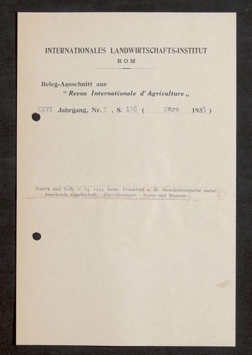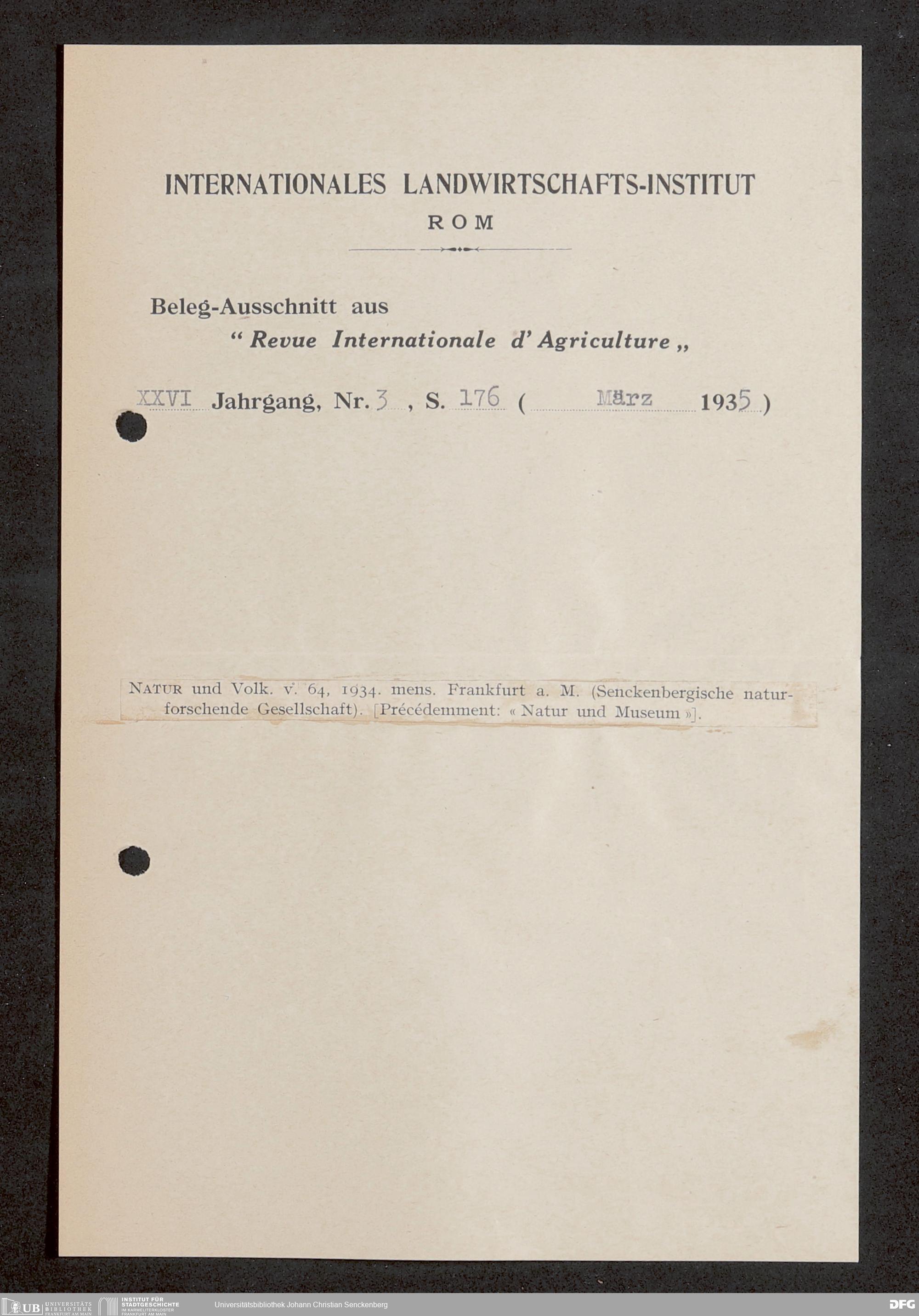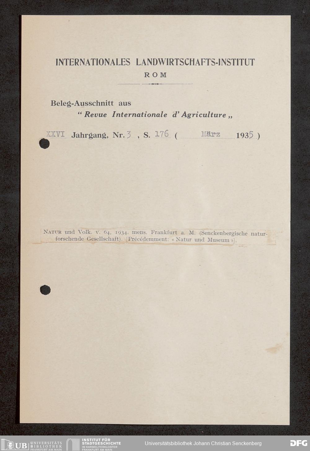 V176 Senckenberg Gesellschaft für Naturforschung, 647 - Rezensionen zu "Natur und Museum" bzw. "Natur und Volk"