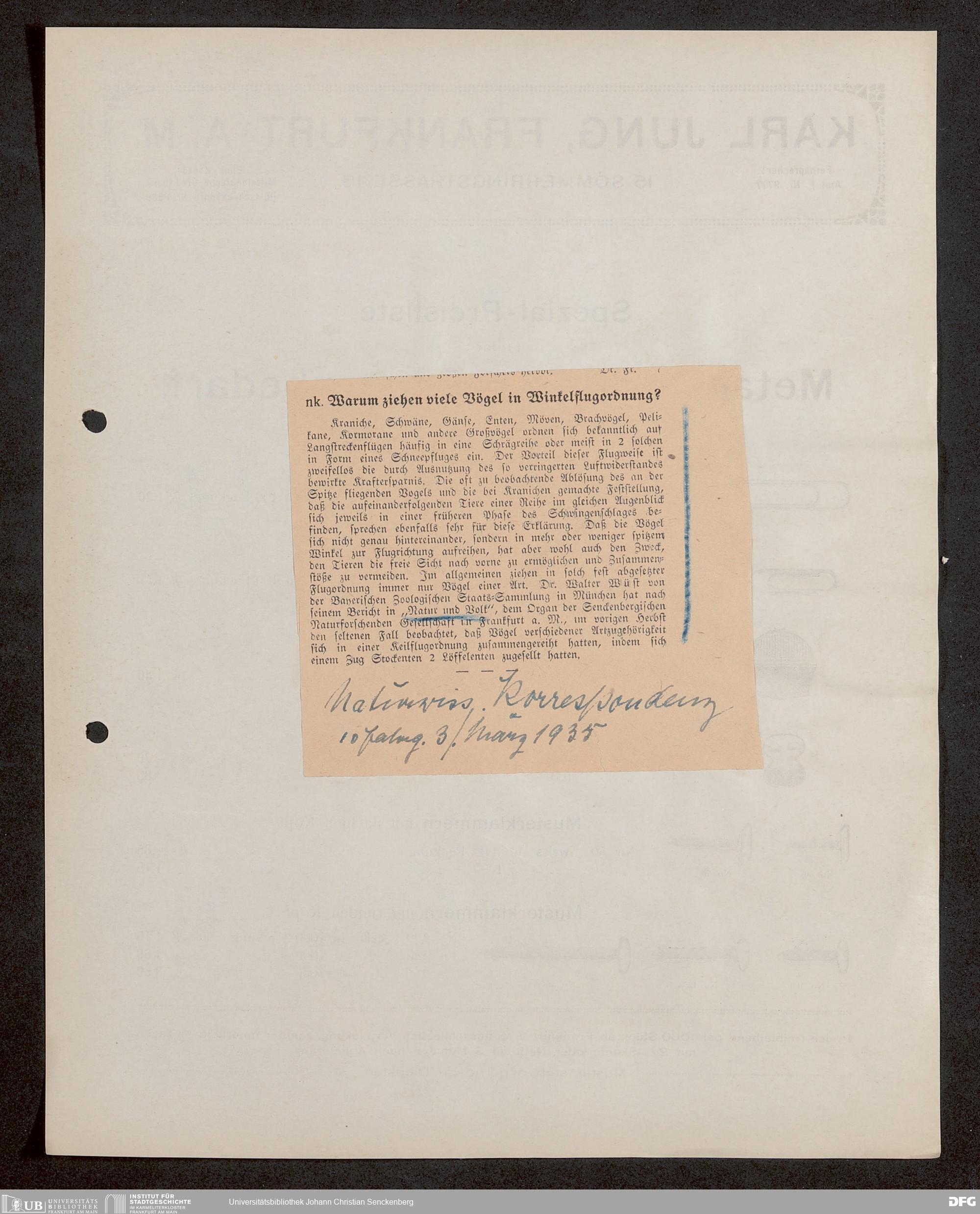 V176 Senckenberg Gesellschaft für Naturforschung, 647 - Rezensionen zu "Natur und Museum" bzw. "Natur und Volk"