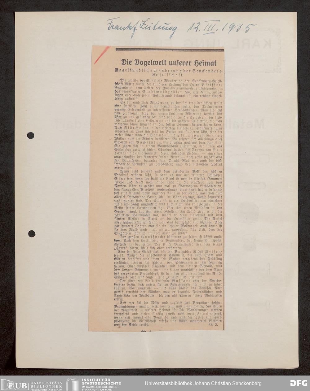 V176 Senckenberg Gesellschaft für Naturforschung, 647 - Rezensionen zu "Natur und Museum" bzw. "Natur und Volk"