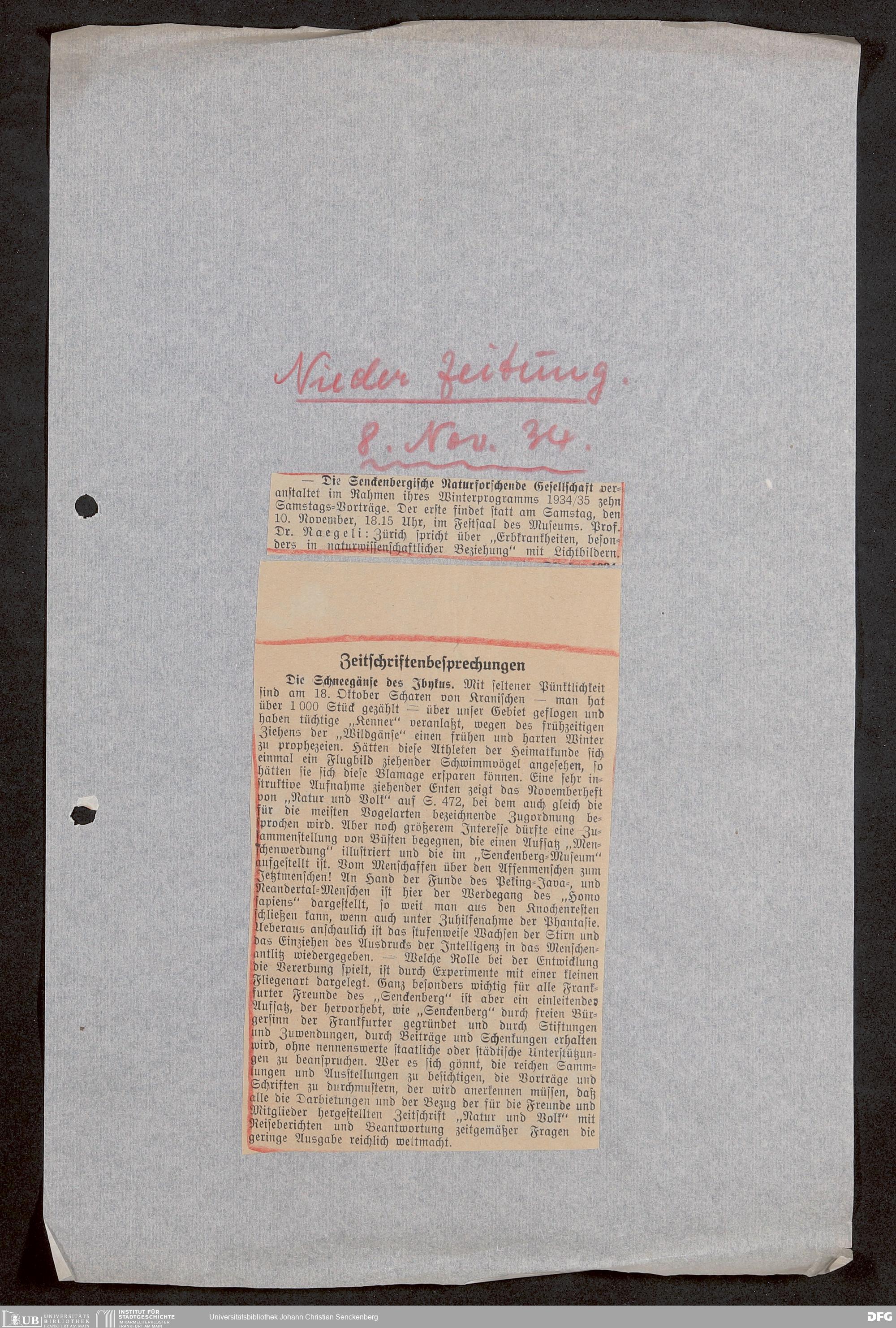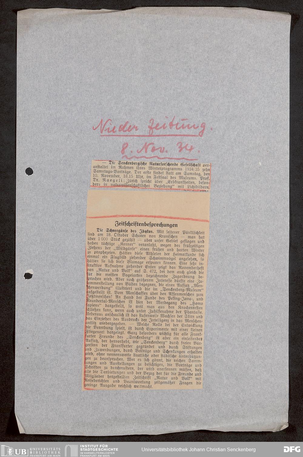 V176 Senckenberg Gesellschaft für Naturforschung, 647 - Rezensionen zu "Natur und Museum" bzw. "Natur und Volk"