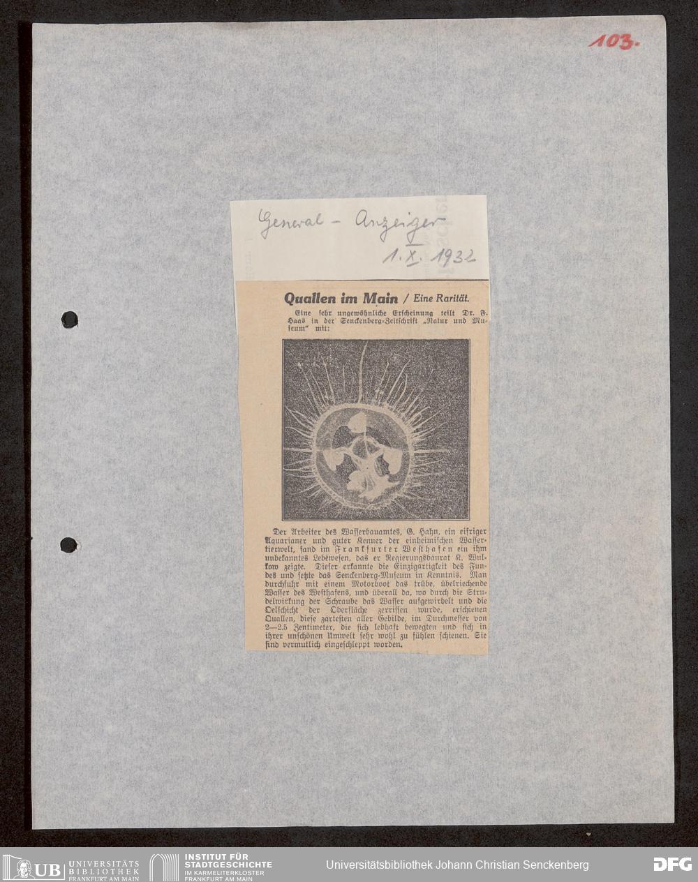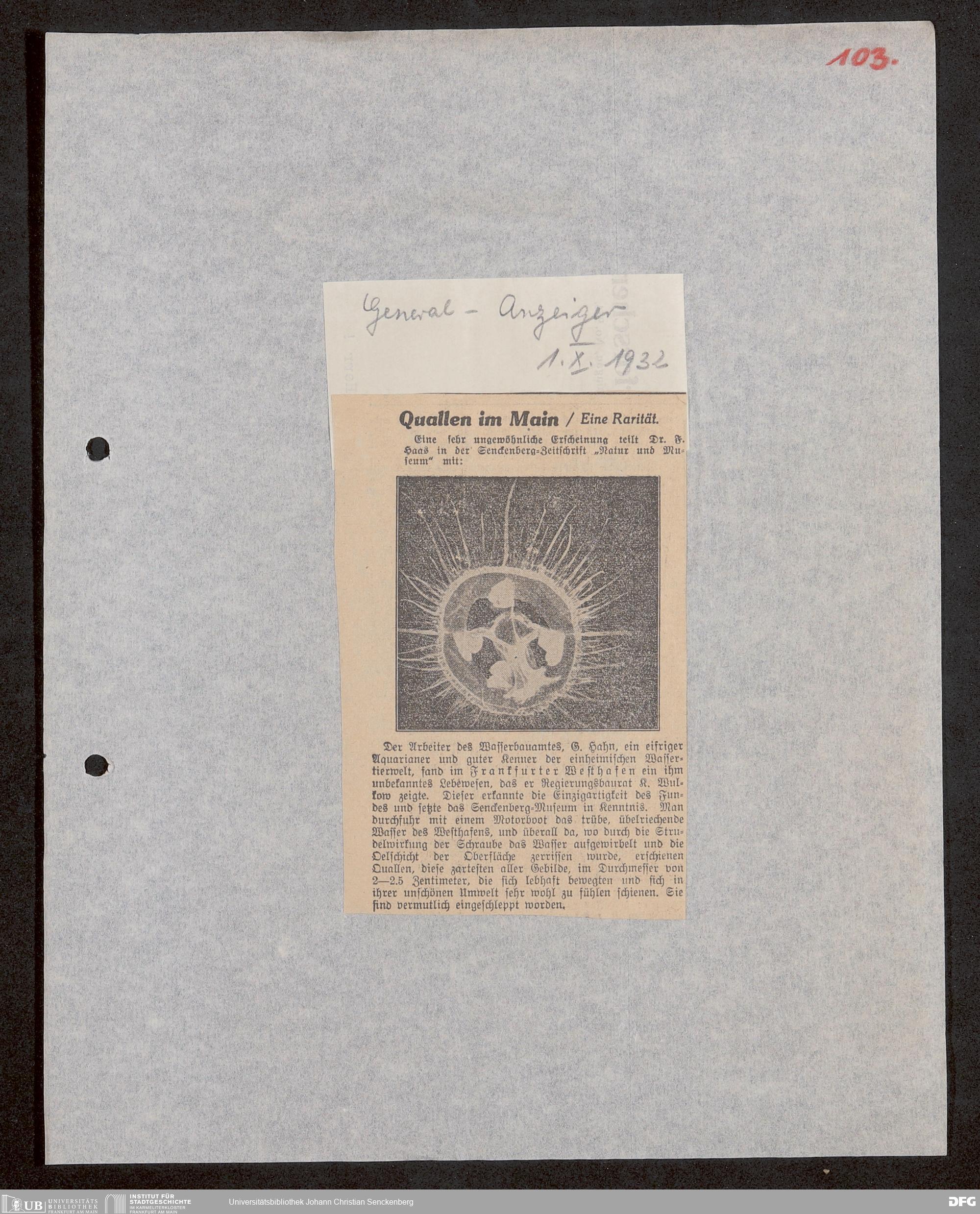 V176 Senckenberg Gesellschaft für Naturforschung, 647 - Rezensionen zu "Natur und Museum" bzw. "Natur und Volk"