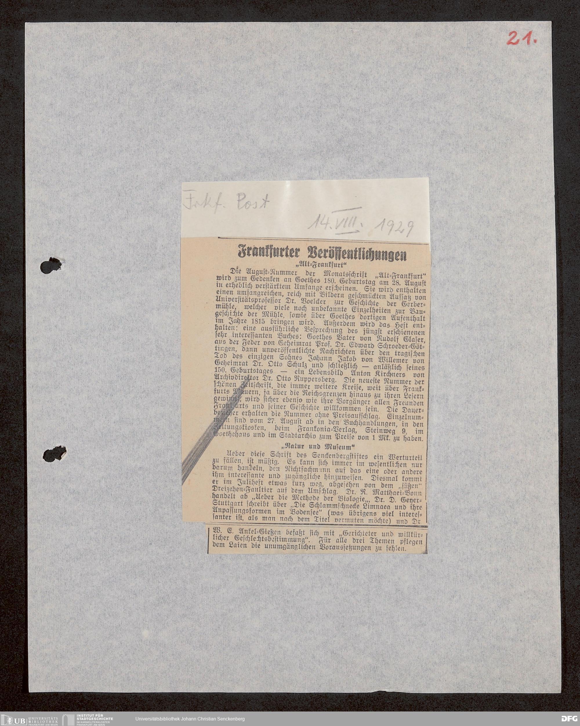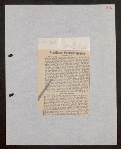 V176 Senckenberg Gesellschaft für Naturforschung, 647 - Rezensionen zu "Natur und Museum" bzw. "Natur und Volk"