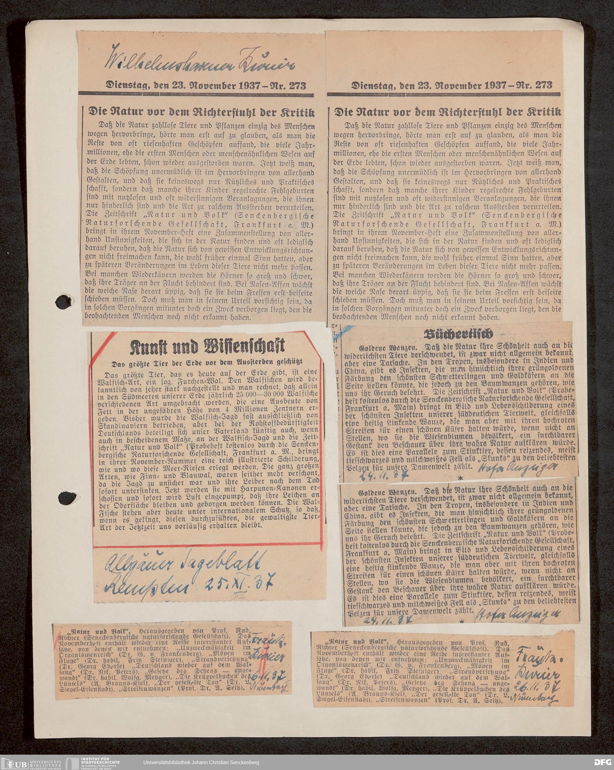 V176 Senckenberg Gesellschaft für Naturforschung, 647 - Rezensionen zu "Natur und Museum" bzw. "Natur und Volk"