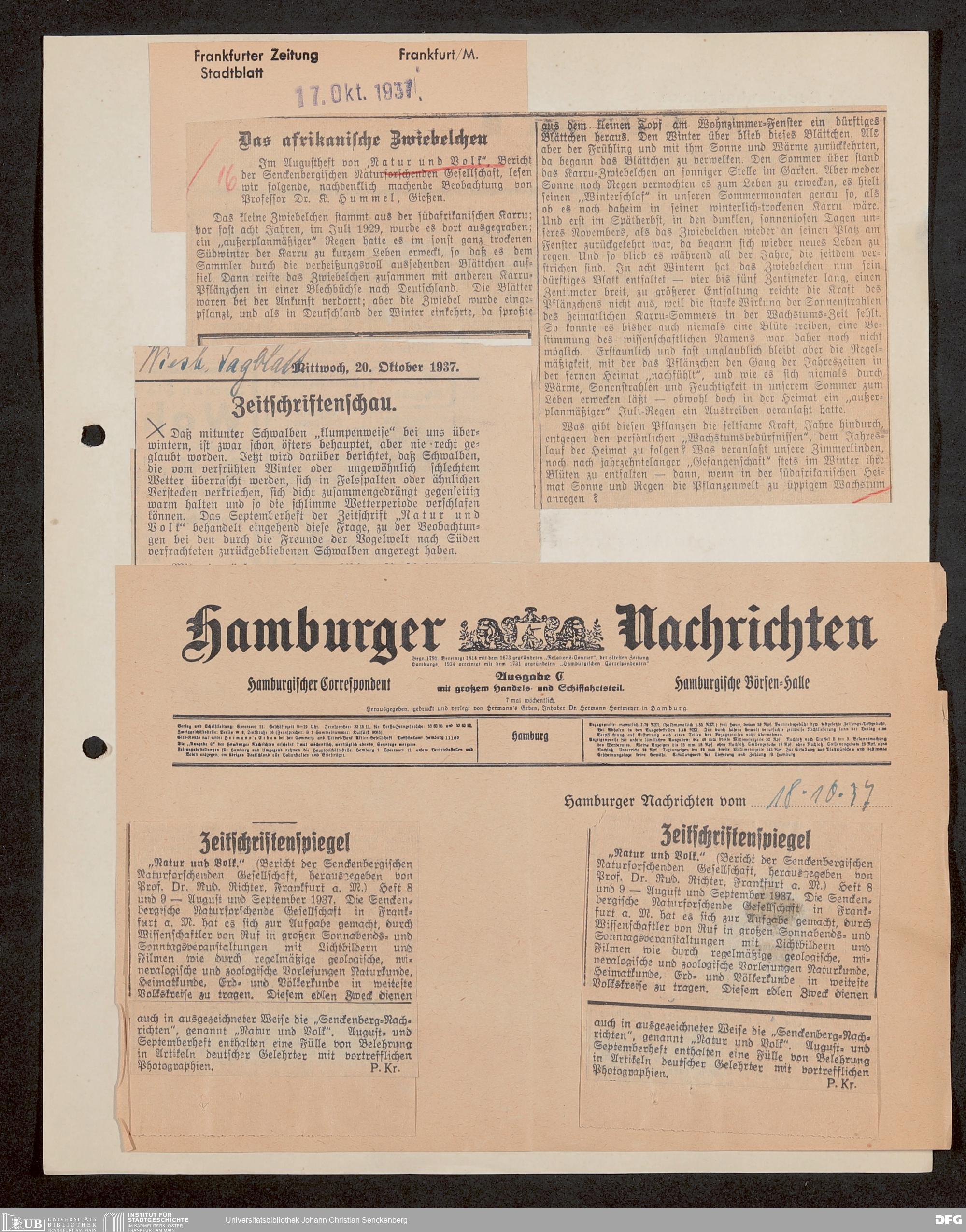 V176 Senckenberg Gesellschaft für Naturforschung, 647 - Rezensionen zu "Natur und Museum" bzw. "Natur und Volk"