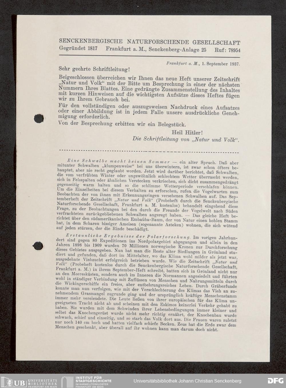 V176 Senckenberg Gesellschaft für Naturforschung, 647 - Rezensionen zu "Natur und Museum" bzw. "Natur und Volk"