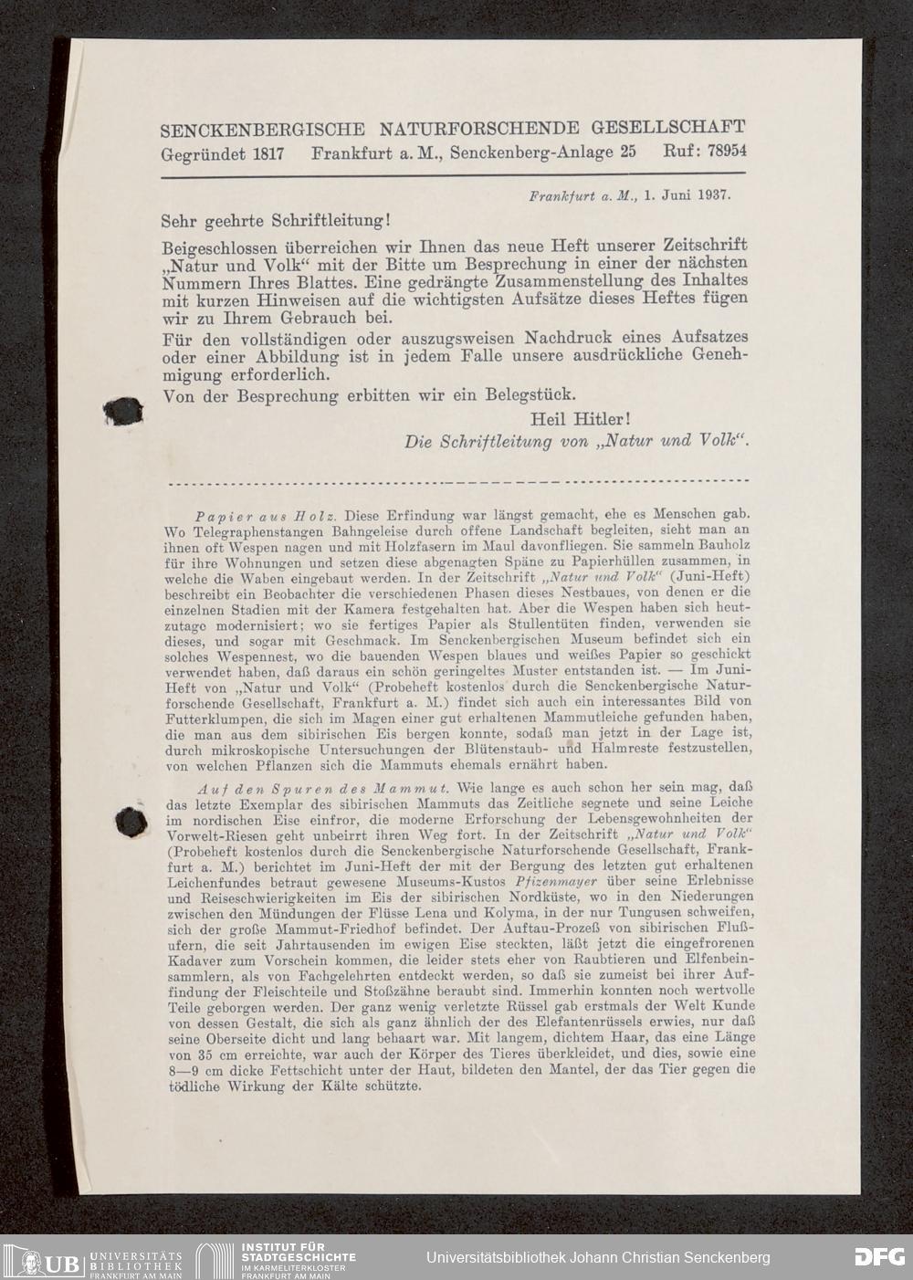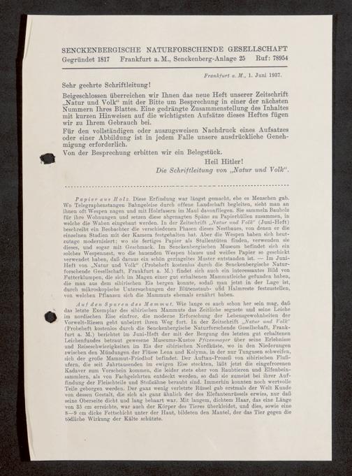 V176 Senckenberg Gesellschaft für Naturforschung, 647 - Rezensionen zu "Natur und Museum" bzw. "Natur und Volk"