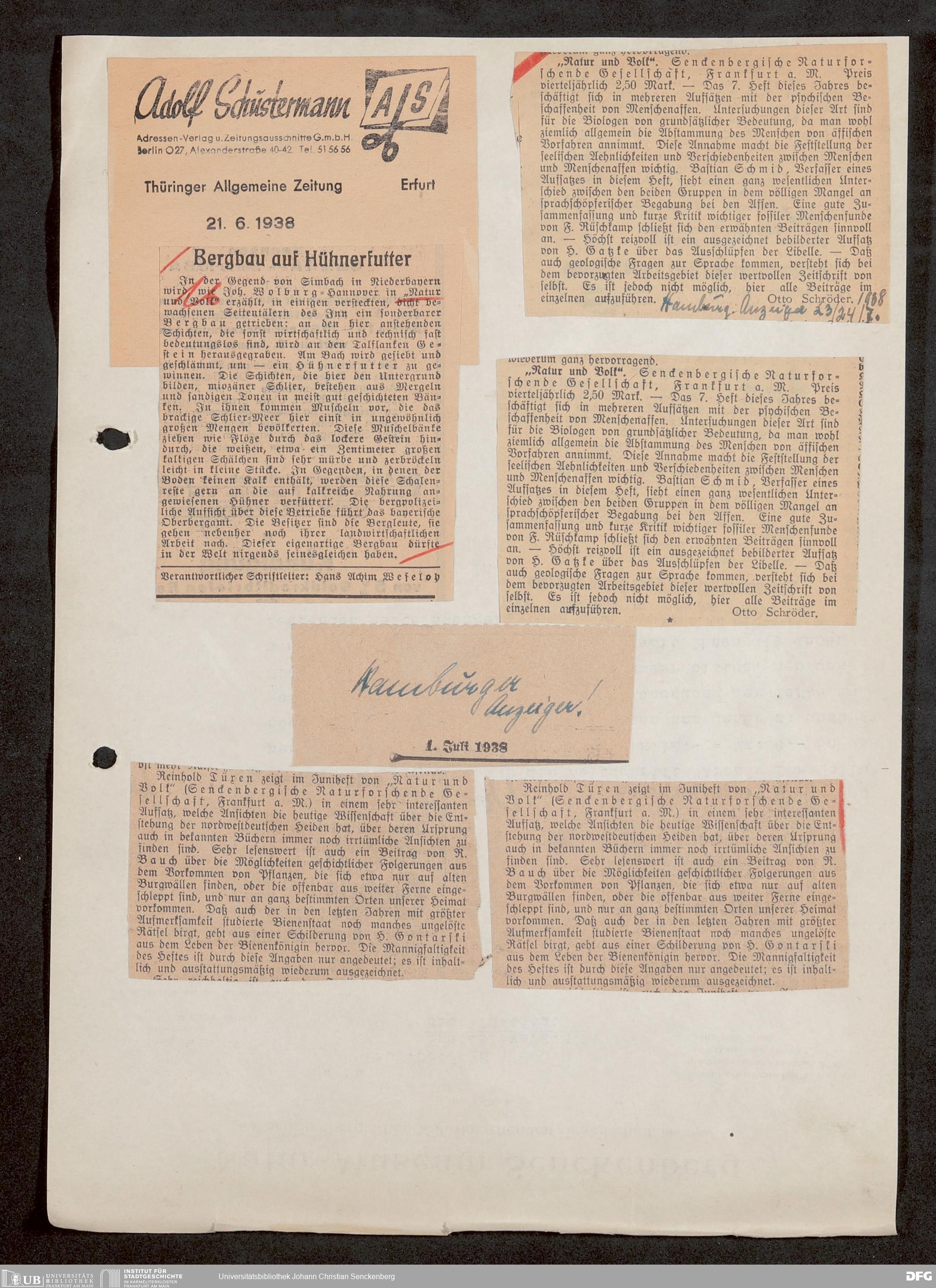 V176 Senckenberg Gesellschaft für Naturforschung, 647 - Rezensionen zu "Natur und Museum" bzw. "Natur und Volk"